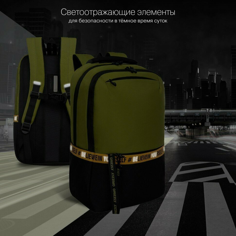 Купить Школьный рюкзак GRIZZLY RU-337-2 черный-оливковый, 29х43х15