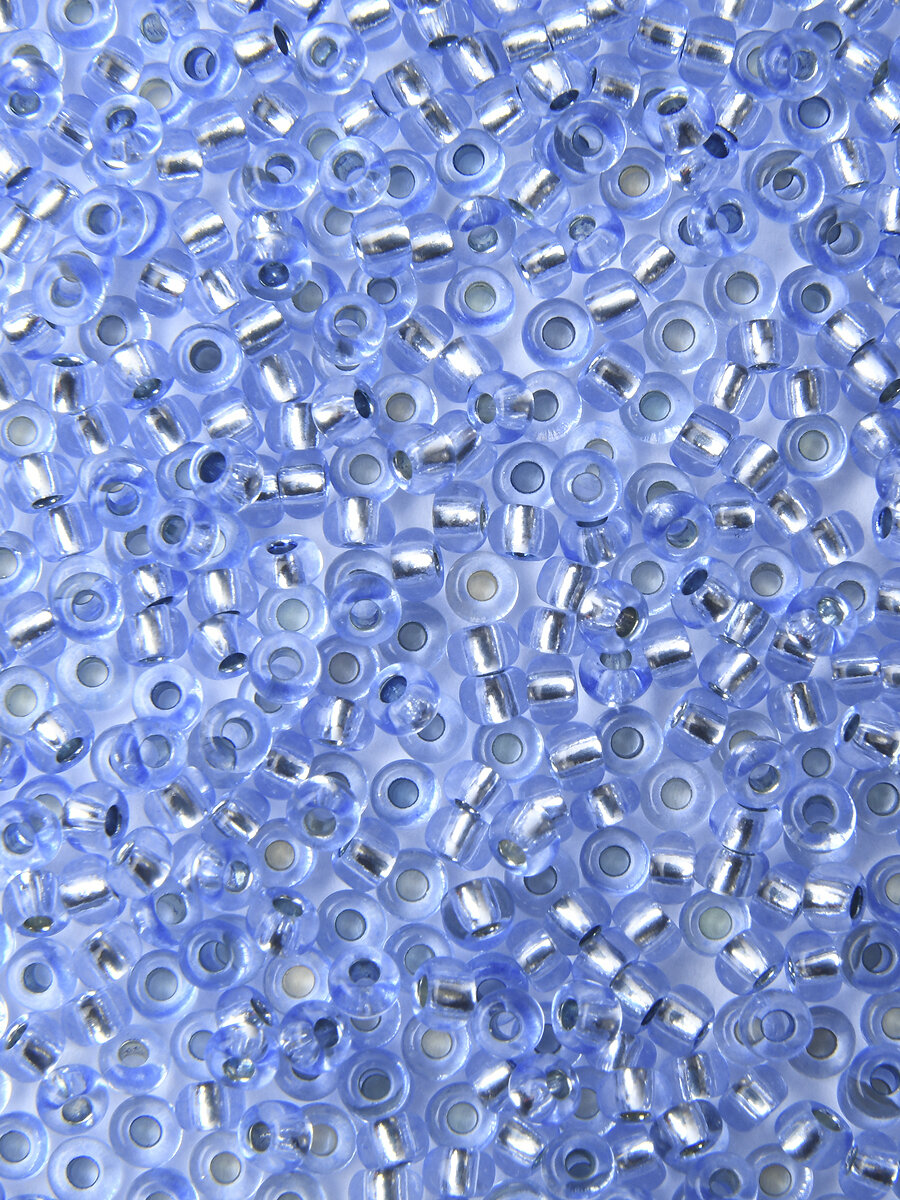 Бисер чешский PRECIOSA круглый 10/0 37050М матовый синий, серебряная линия внутри, квадратное отверстие, 2 сорт, 50г