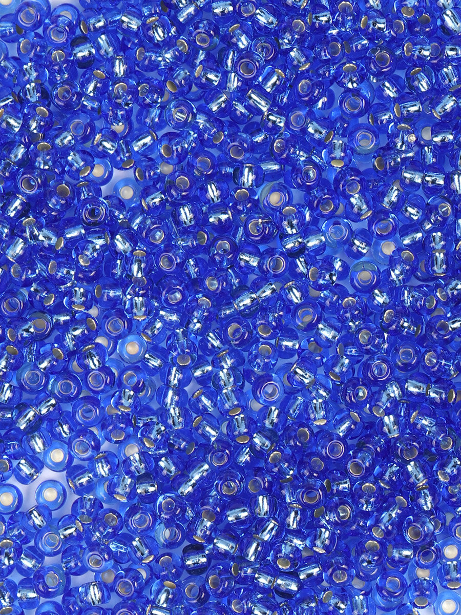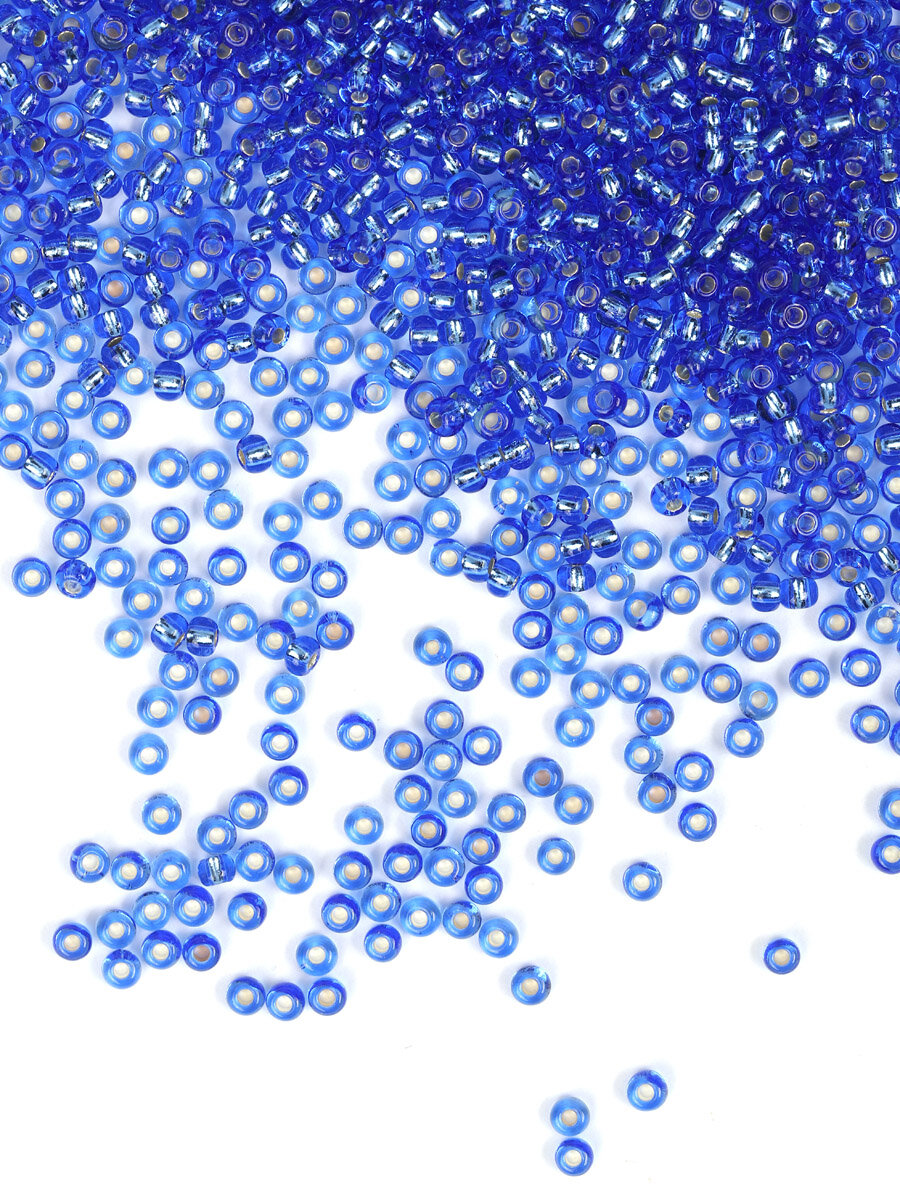 Бисер чешский PRECIOSA круглый 10/0 37050М матовый синий, серебряная линия внутри, квадратное отверстие, 2 сорт, 50г