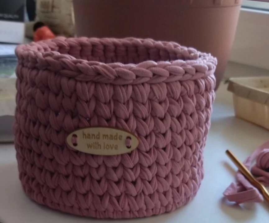 | Подробная комплектация | трикотажная пряжа изнаночной нарезки 50 метров, деревянное донышко 15 см, деревянная бирочка с надписью hand , металлический крючок №6, игла для сшивания изделий, маркировщики петель 2 шт, инструкция |