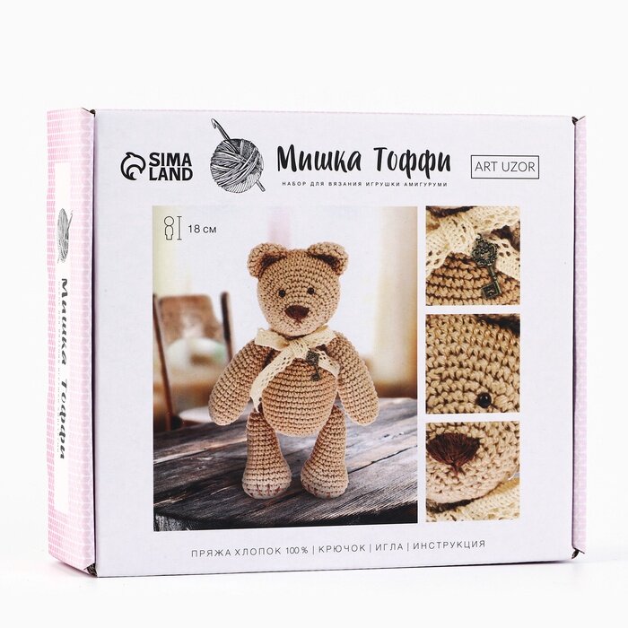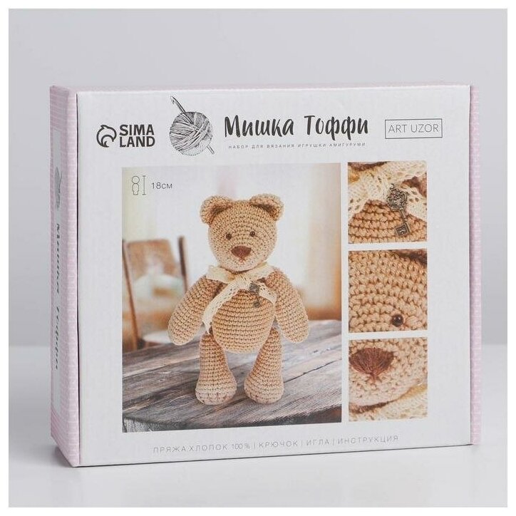 Мягкая игрушка Мишка Тоффи, набор для вязания, 12 см ? 4 см ? 12,5 см Арт Узор 1657295 .