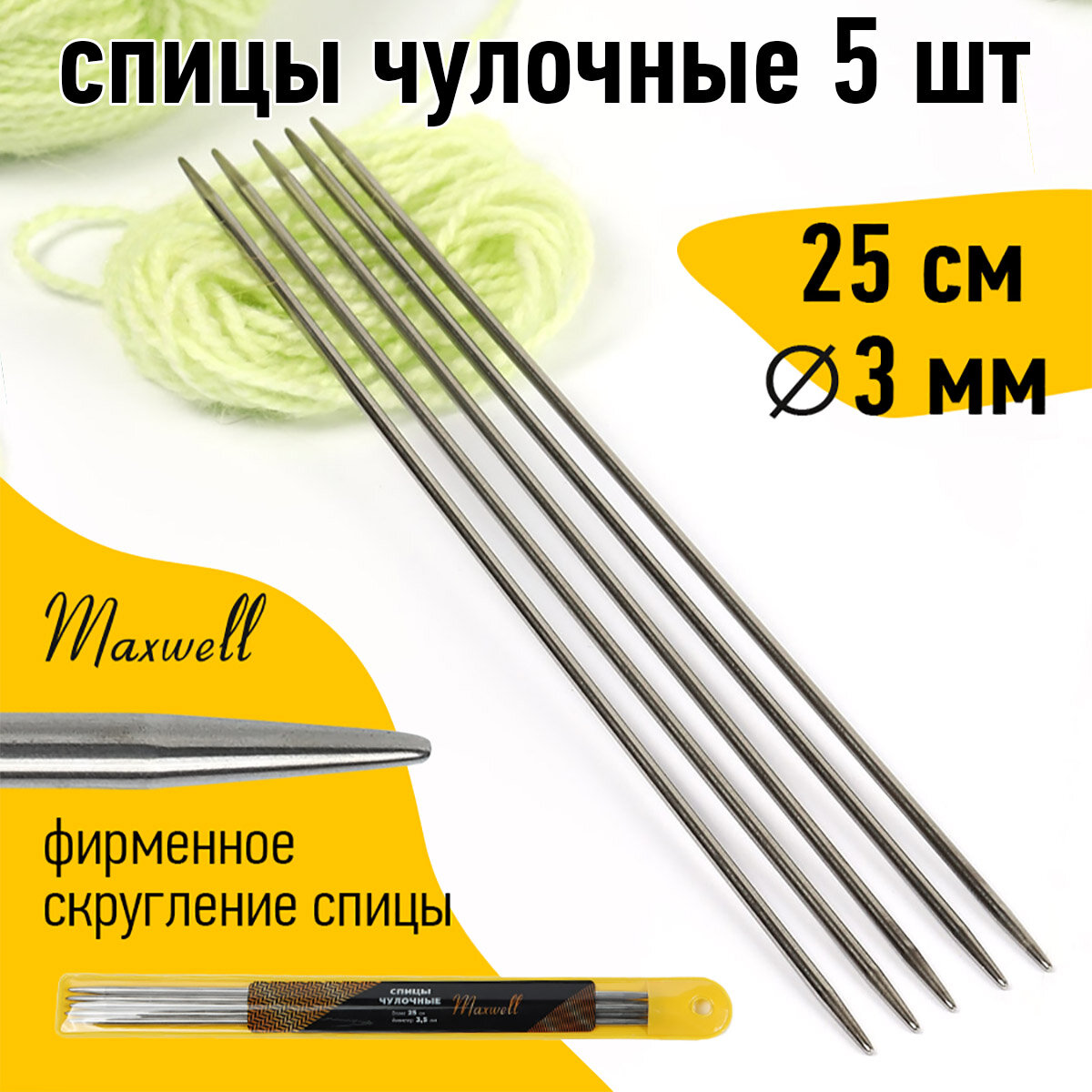 Спицы чулочные 25 см, металл, 5,0 мм, 5 шт. Maxwell