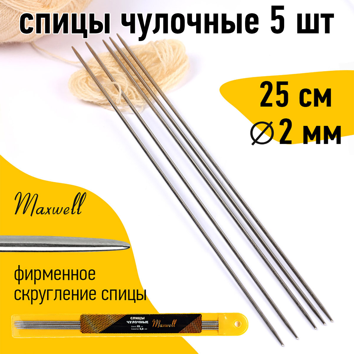 Спицы чулочные 25 см, металл, 5,0 мм, 5 шт. Maxwell