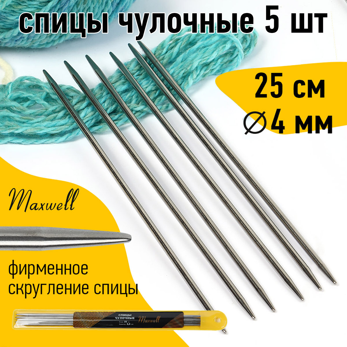 Спицы чулочные 25 см, металл, 4,0 мм, 5 шт. Maxwell
