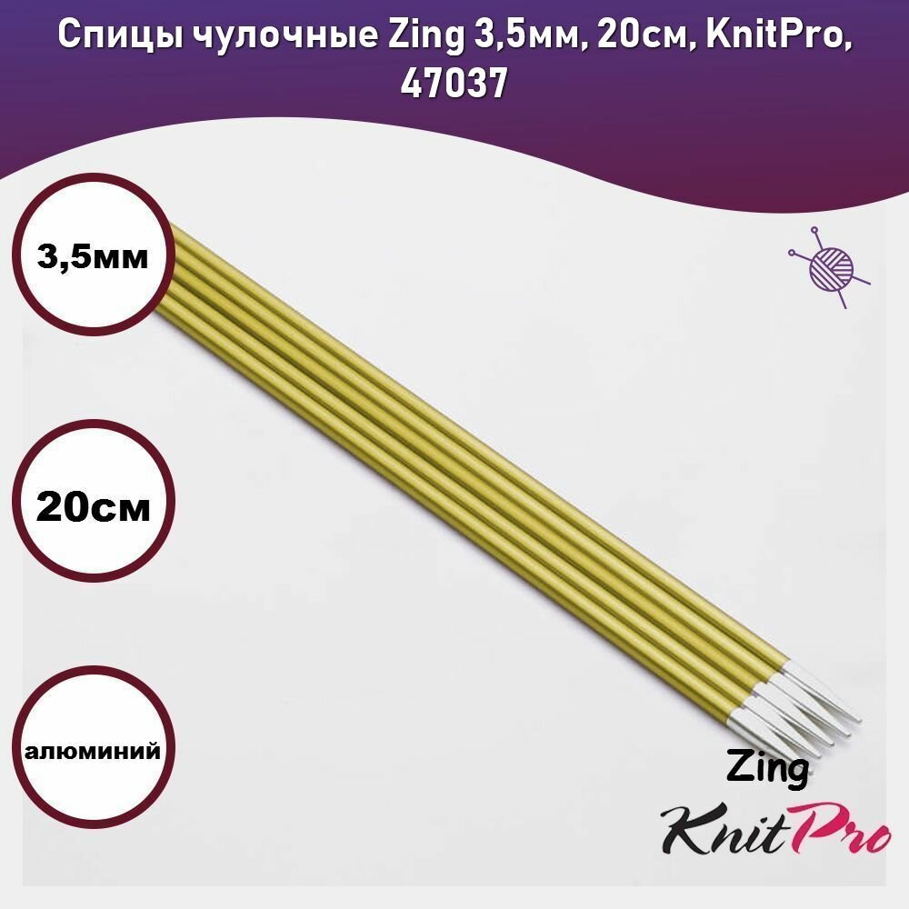 Спицы чулочные Zing 3,5мм/15см, алюминий, 5шт в упаковке, KnitPro, 47007