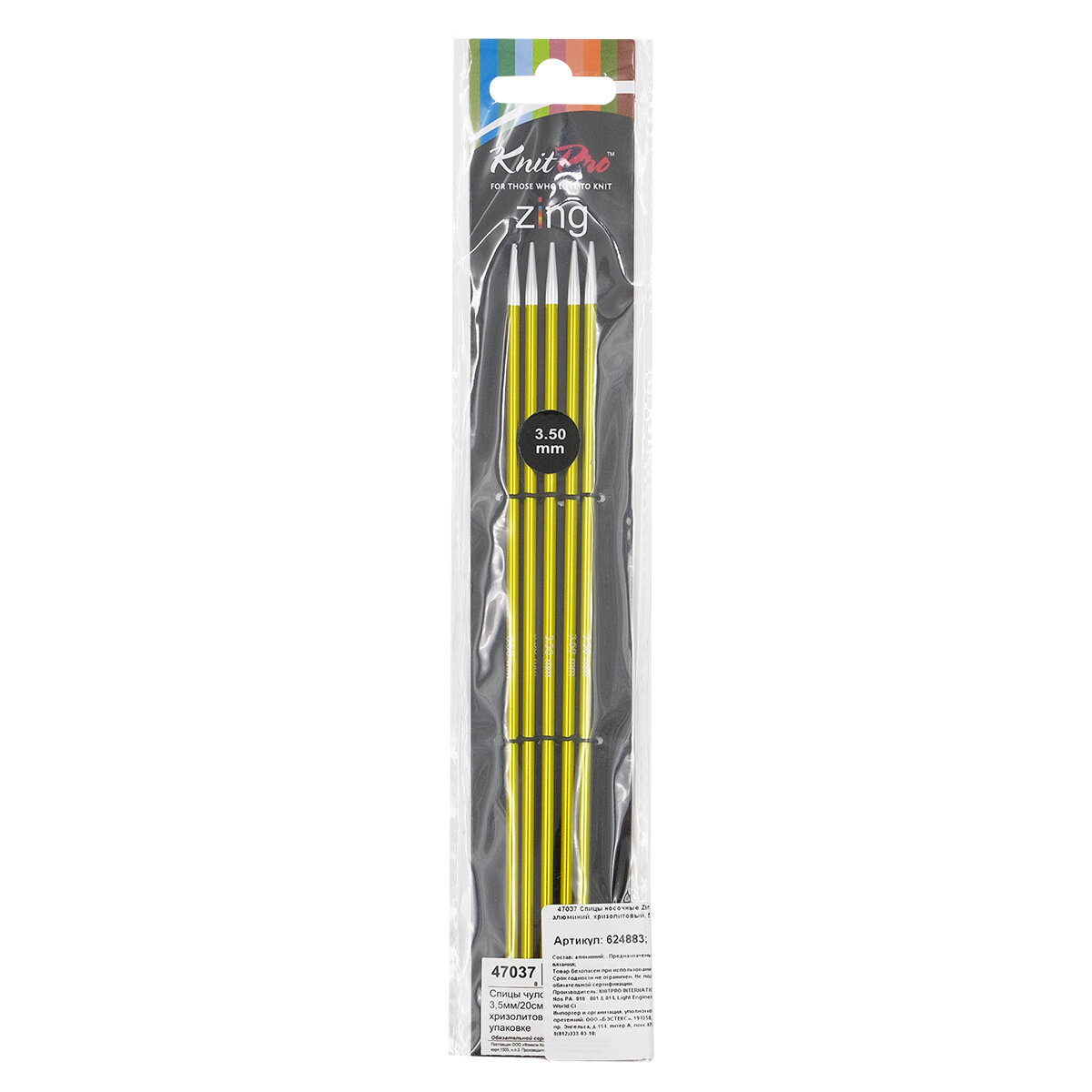 Купить Спицы носочные Zing 3,5 мм/20 см, алюминий, хризолитовый, 5 шт, KnitPro