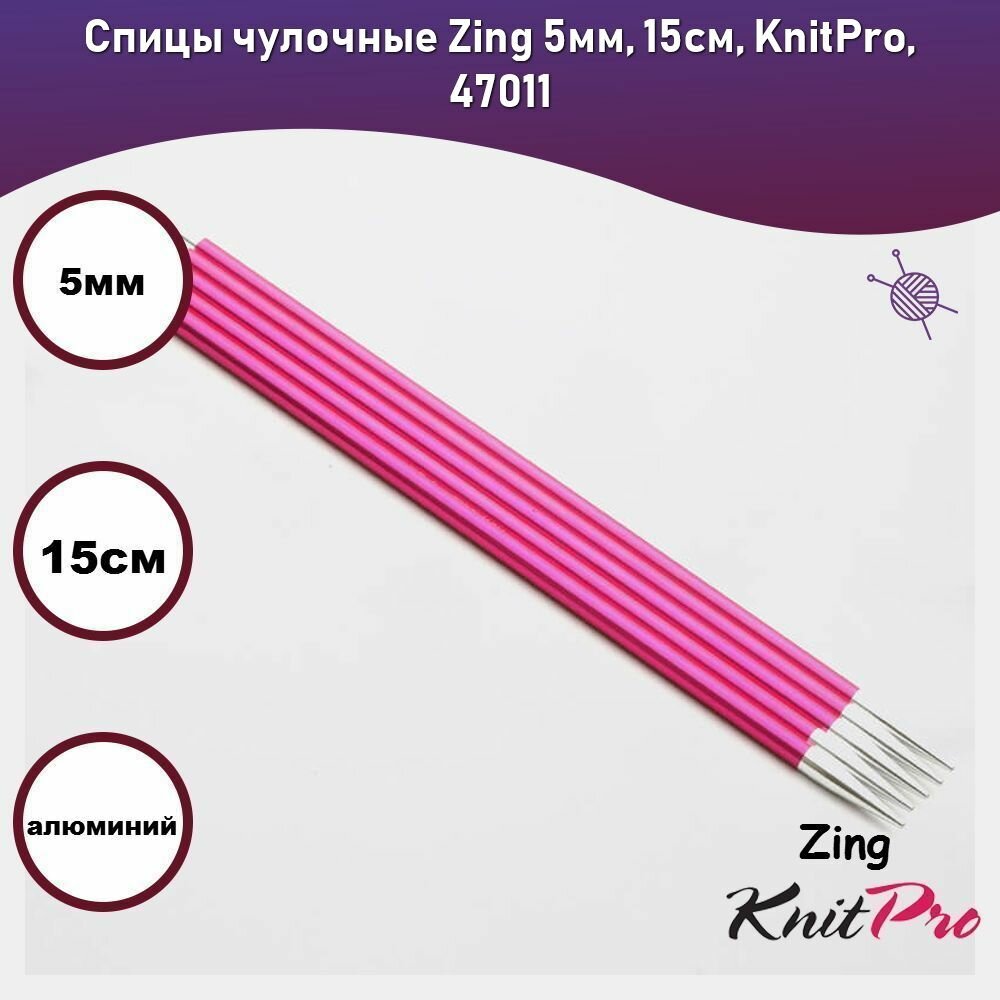 Спицы чулочные Zing 5мм/15см, алюминий, 5шт в упаковке, KnitPro, 47011