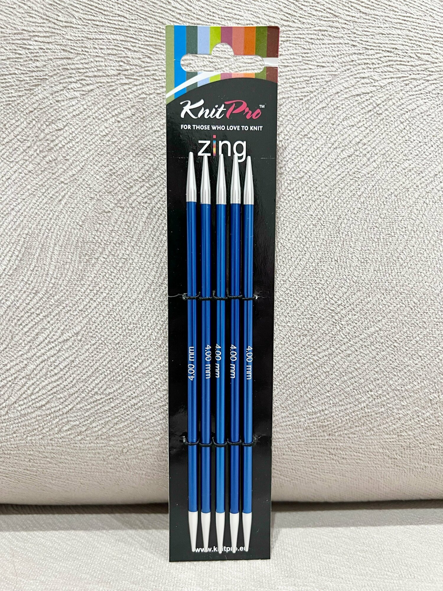 Спицы носочные Zing 4 мм/20 см, алюминий, сапфир (темно-синий), 5 шт, KnitPro