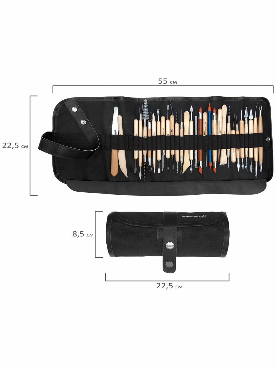 Набор инструментов для лепки и моделирования из глины и пластилина, 30 штук в скрутке, Brauberg Art Classic 271176