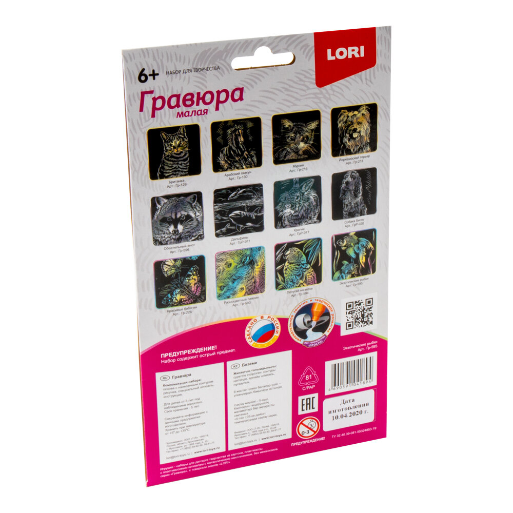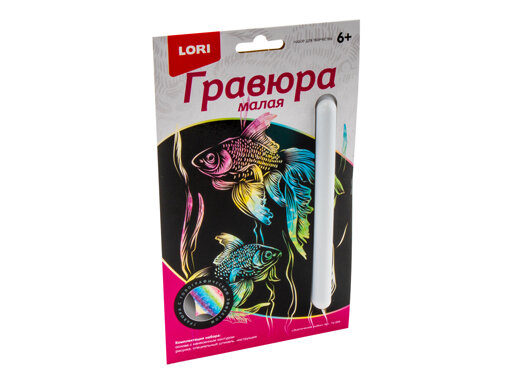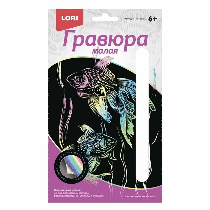 Гравюра "Lori" 10*15см с эффектом голографии Экзотические рыбки, основа с контуром рисунка, штихель