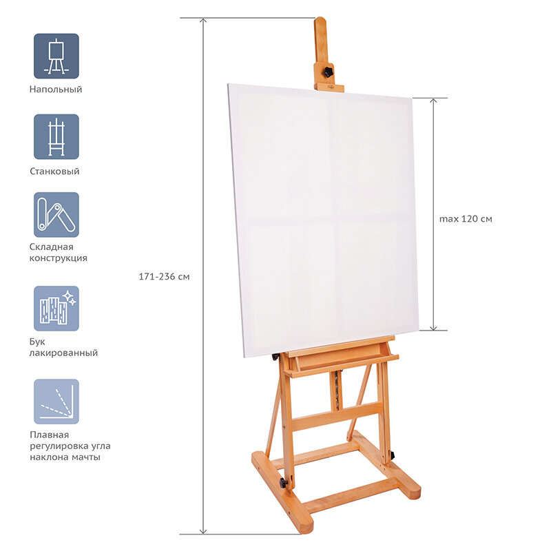 Мольберт напольный студийный Гамма, 54×55×171(236)см, бук