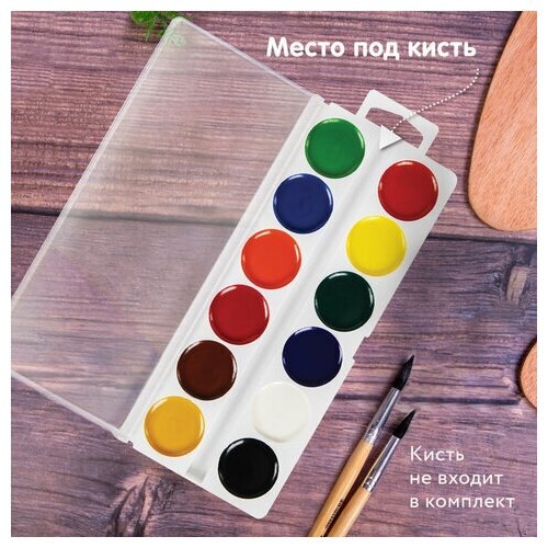 Краски акварельные для рисования Brauberg Магия Цвета New, медовые, 12 цветов, круглые кюветы, 192286