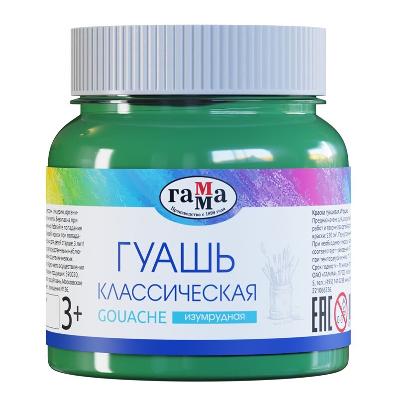 Купить Гамма Гуашь "Классическая", изумрудная, 220мл