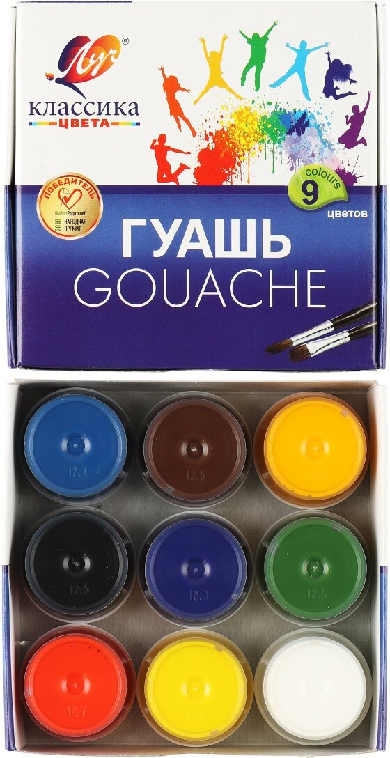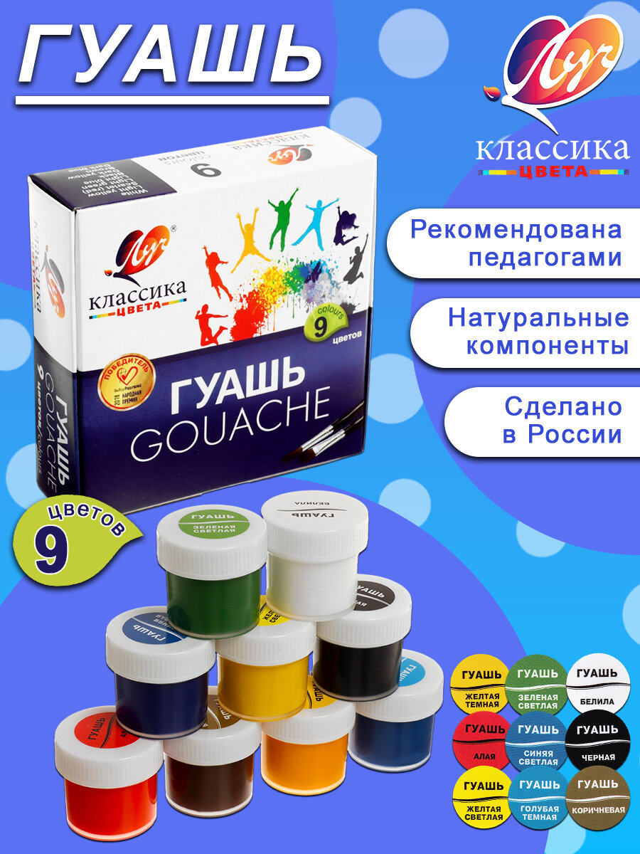 Гуашь Луч "Классика" 9 цветов, 20 мл
