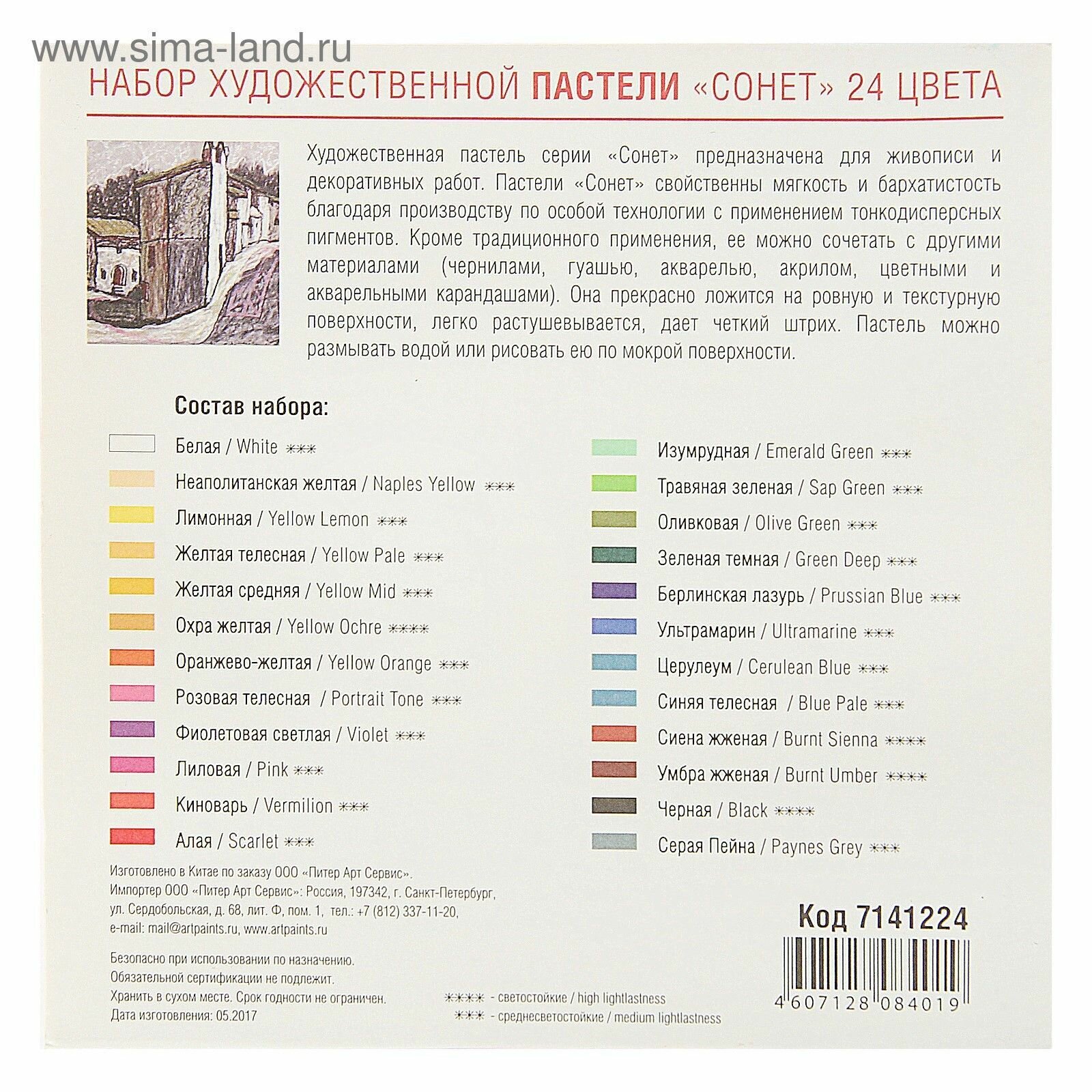 Ниже Вы можете прочитать отзывы на Пастель сухая Сонет 24цв 7141224, ознакомится с подробными характеристиками, посмотреть интересные обзоры и фотографии на Пастель сухая Сонет 24цв 7141224.