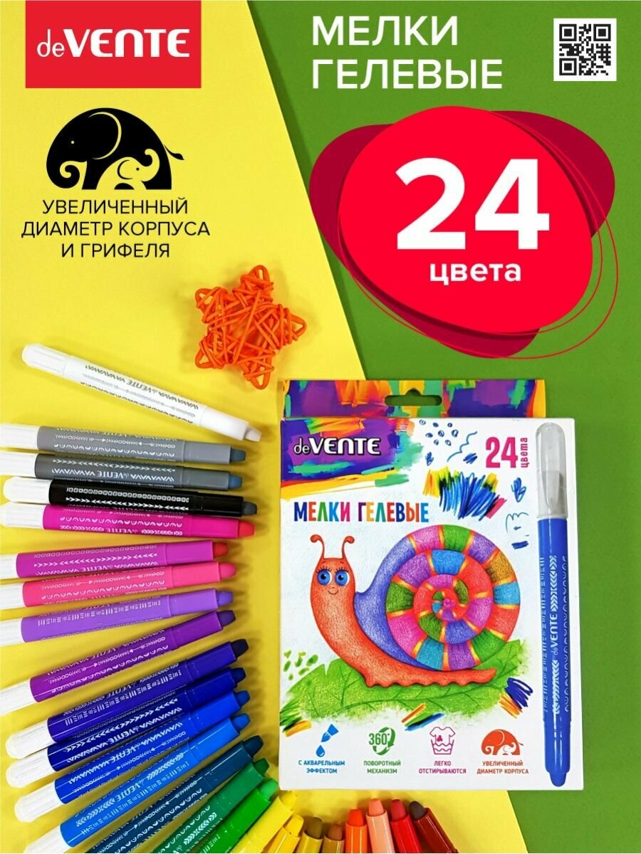 Купить Набор гелевых мелков deVENTE 24 цвета, ультрамягкий, акварельный, картонная упаковка