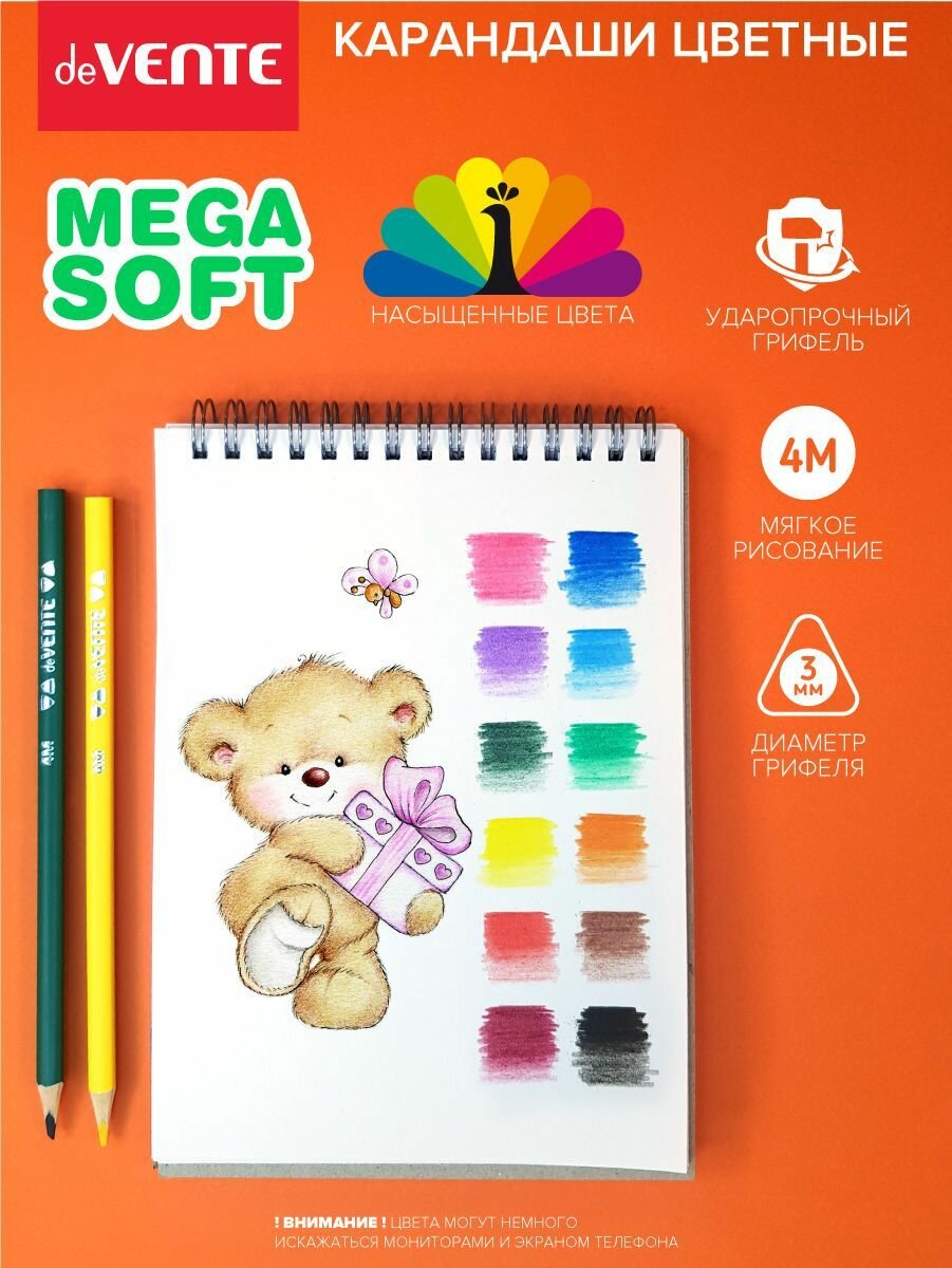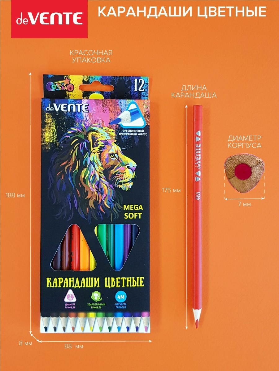 Купить DeVENTE Карандаши 12 цветов, deVENTE Trio Mega Soft , 4М, 3 мм, трёхгранные