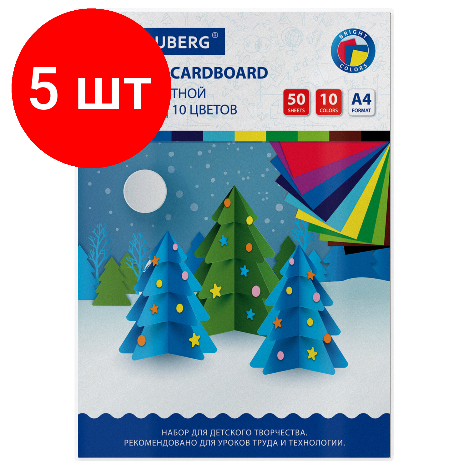 Комплект 5 шт, Картон цветной А4 немелованный, 50 листов 10 цветов, склейка, BRAUBERG, 200х290 мм, 113559 интересное: