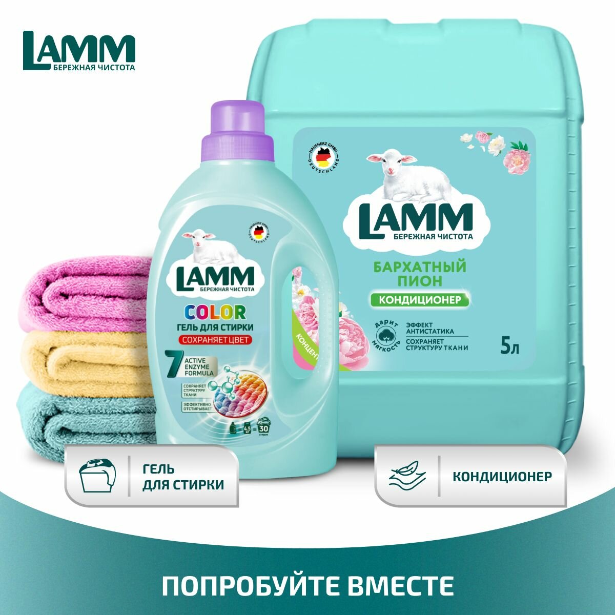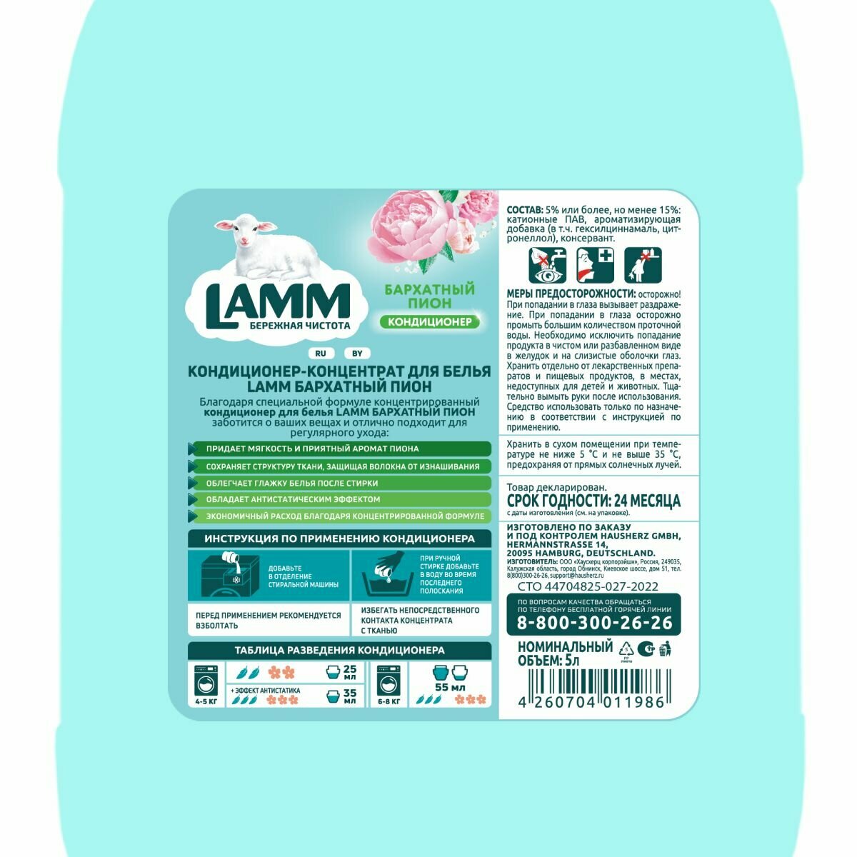 Купить LAMM Бархатный пион кондиционер для белья универсальный концентрат ополаскиватель антистатик для всех типов тканей 200 стирок 5 л