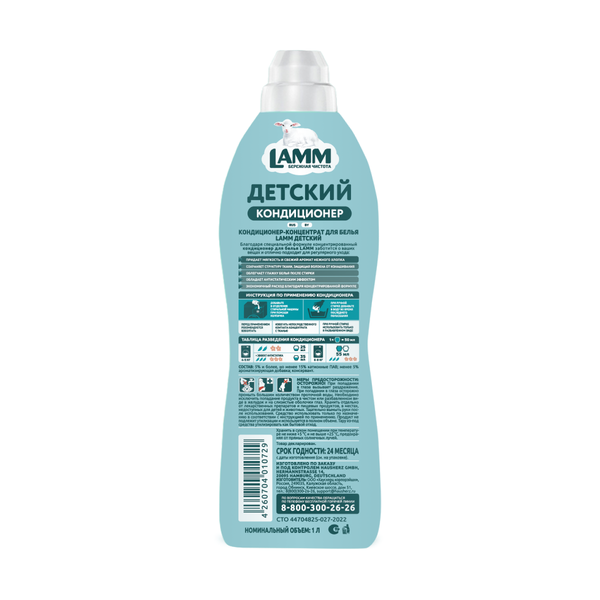 Детский кондиционер ополаскиватель для белья LAMM Нежный хлопок,1 л, концентрат, для детского белья, 1 литр, Лам, ламм, lam