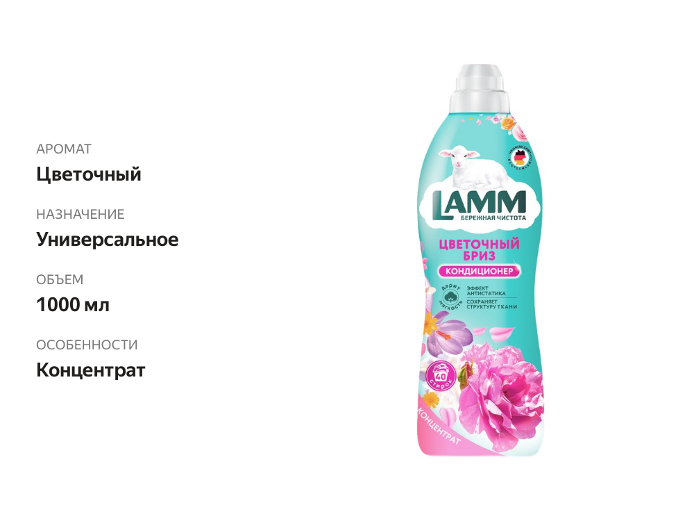 Купить LAMM Цветочный бриз кондиционер для белья универсальный концентрат ополаскиватель антистатик для всех типов тканей 40 стирок 1 л