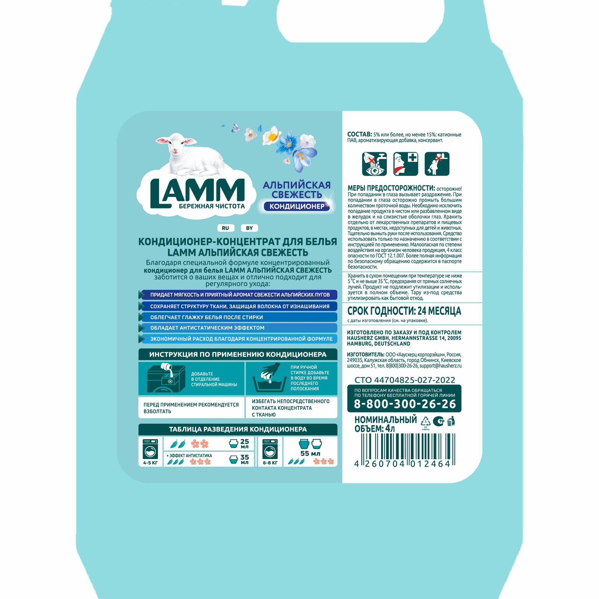 Купить LAMM Альпийская свежесть кондиционер для белья универсальный концентрат ополаскиватель для всех типов тканей 160 стирок 4 л