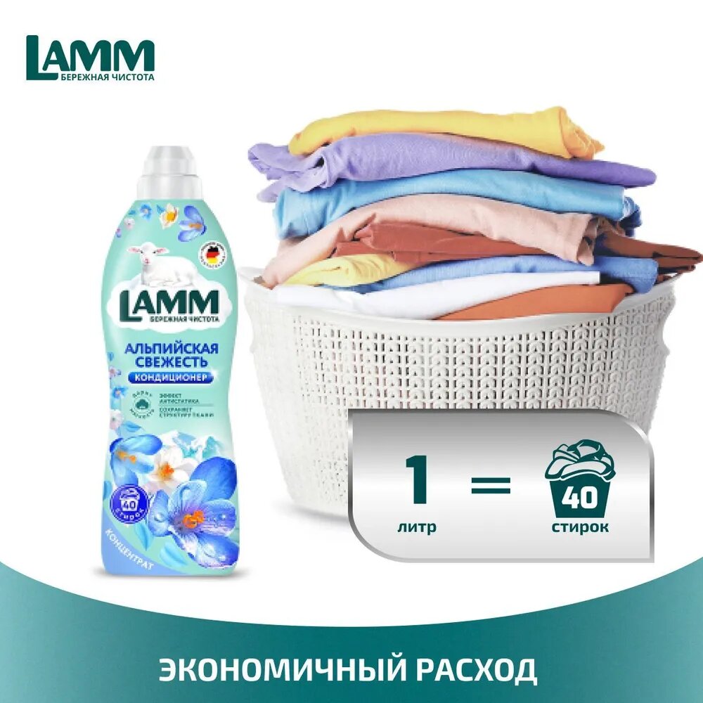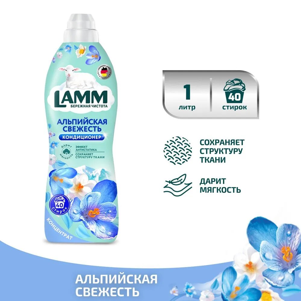 Кондиционер ополаскиватель для белья LAMM Альпийская свежесть 1 л, концентрат, 40 стирок, универсальный, 1 литр, для всех типов белья