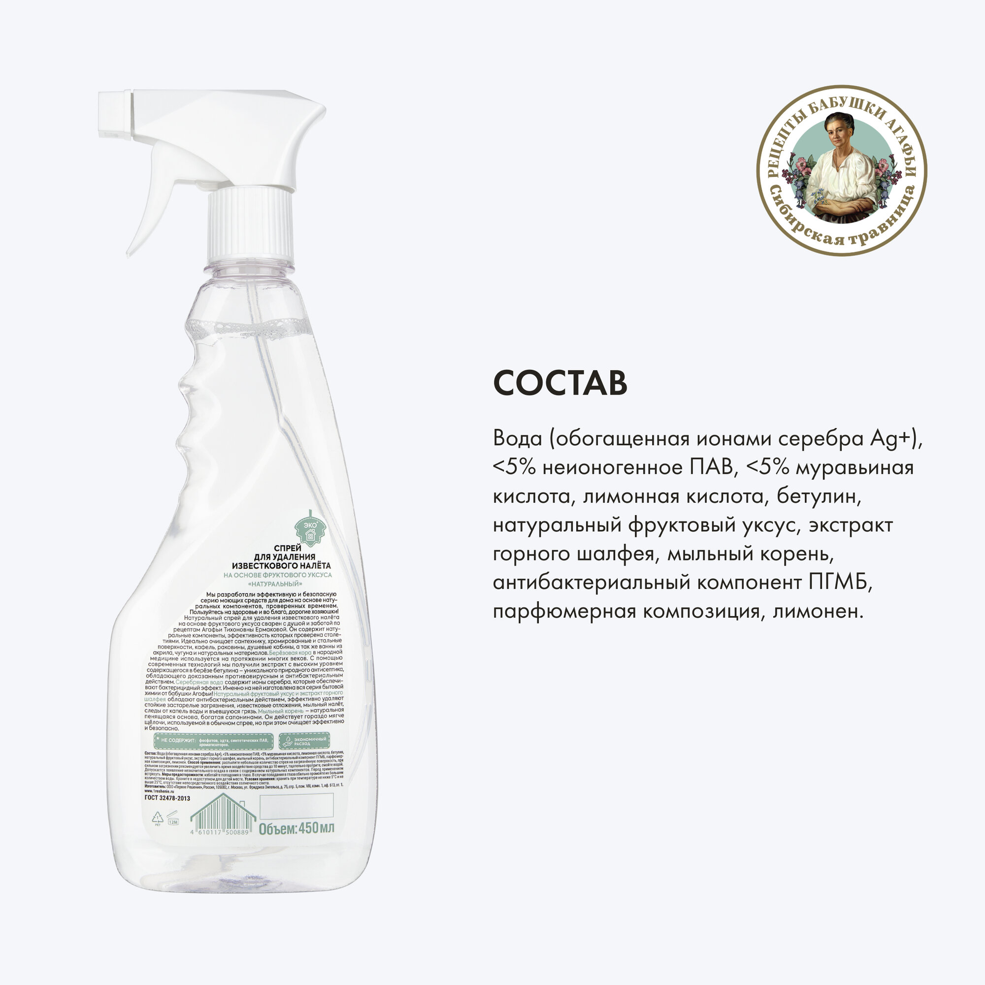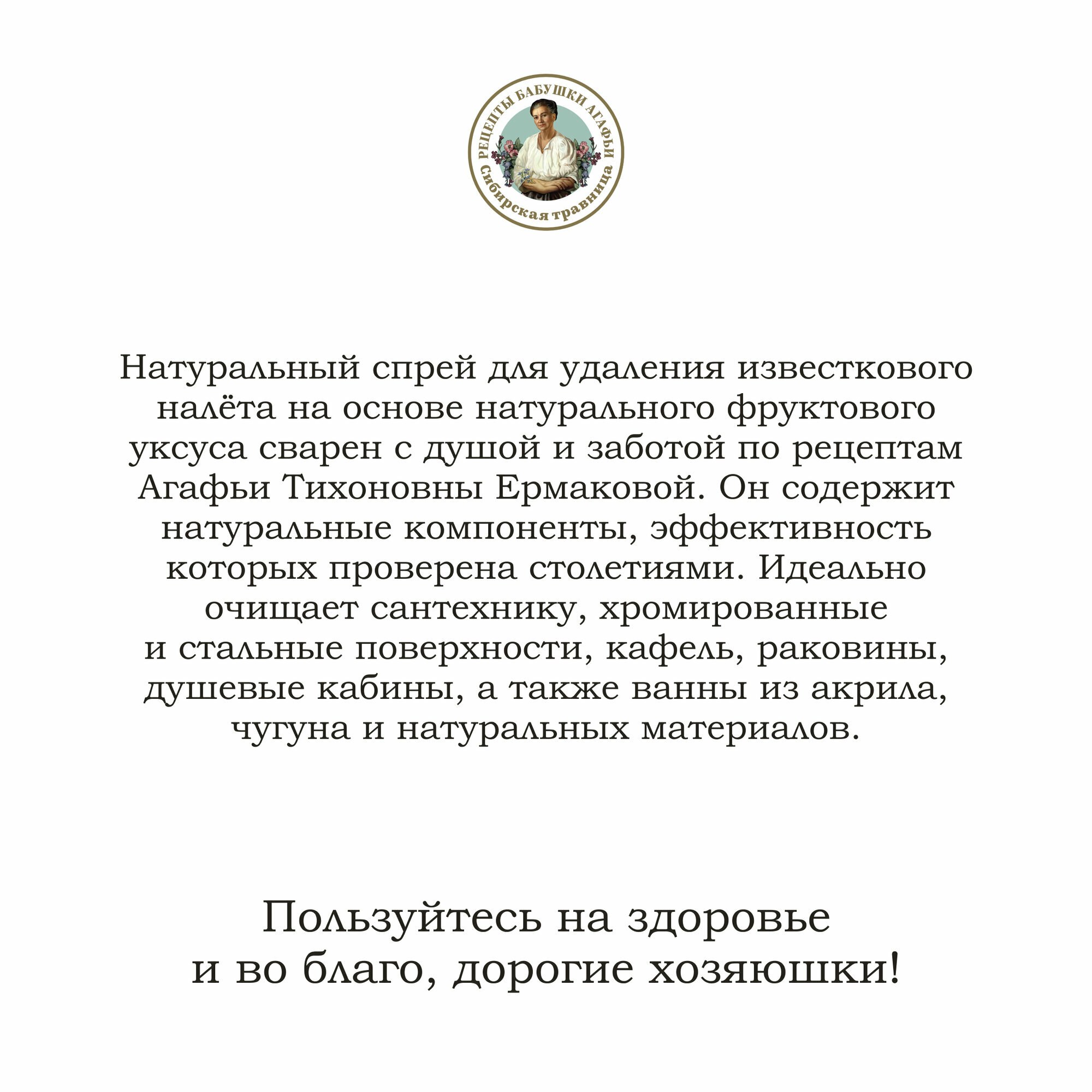 Рецепты бабушки Агафьи Сибирская Травница Спрей для удаления известкового налёта Натуральный, 450 мл интересное:
