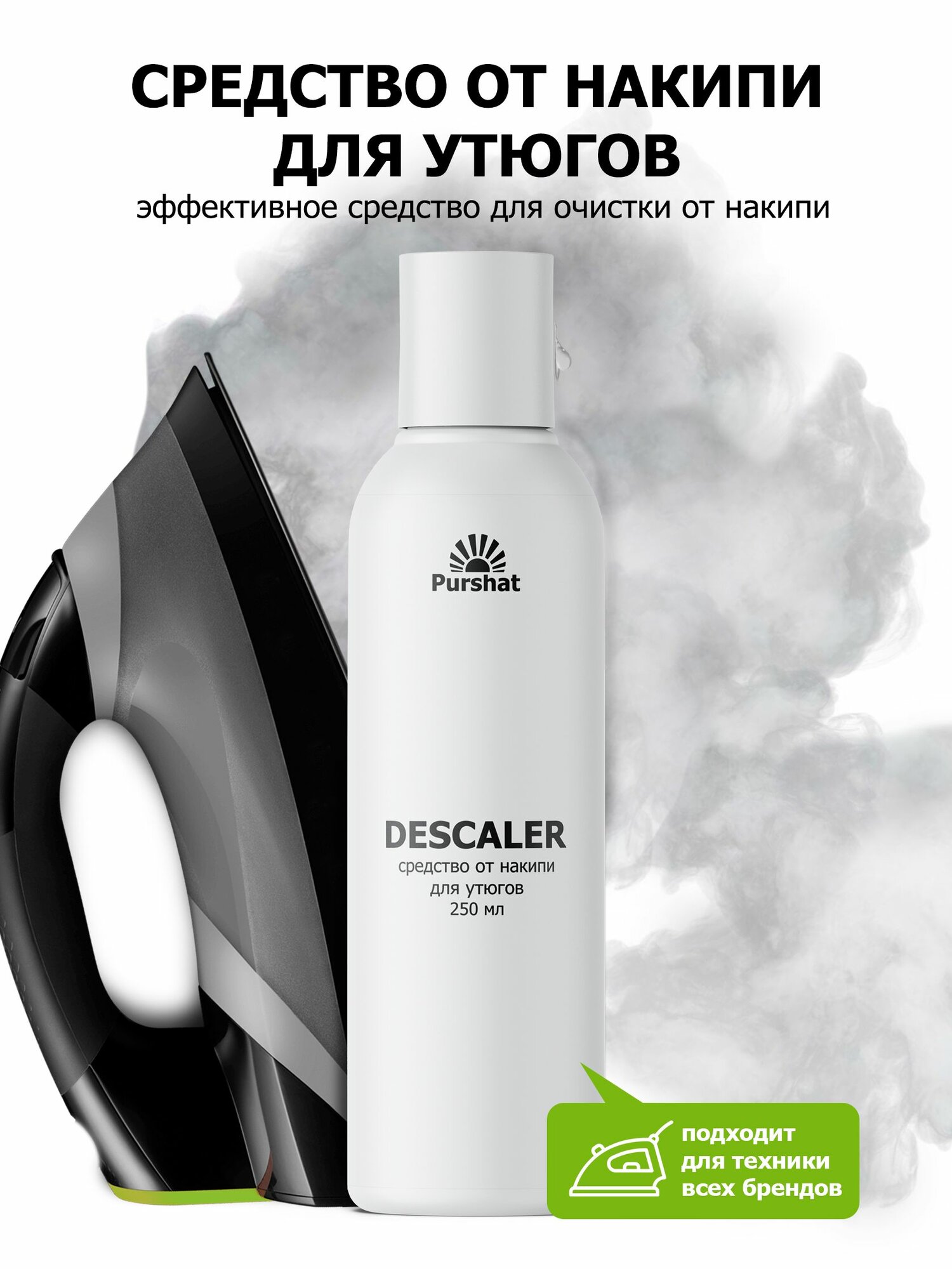 Средство от накипи для утюгов, парогенераторов и увлажнителей воздуха. Универсальный очиститель накипи Пуршат (Purshat) 1000 мл