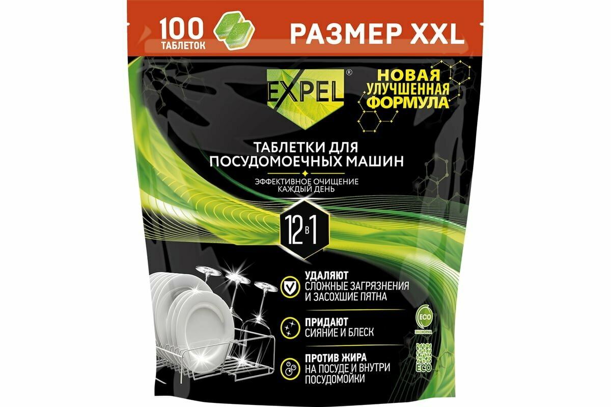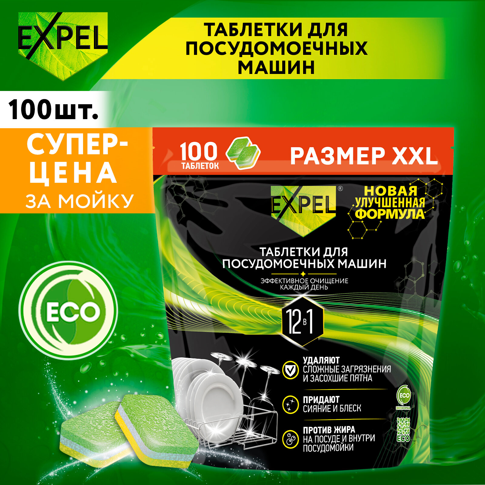 Таблетки для посудомоечных машин Expel, таблетки для ПММ 100 шт