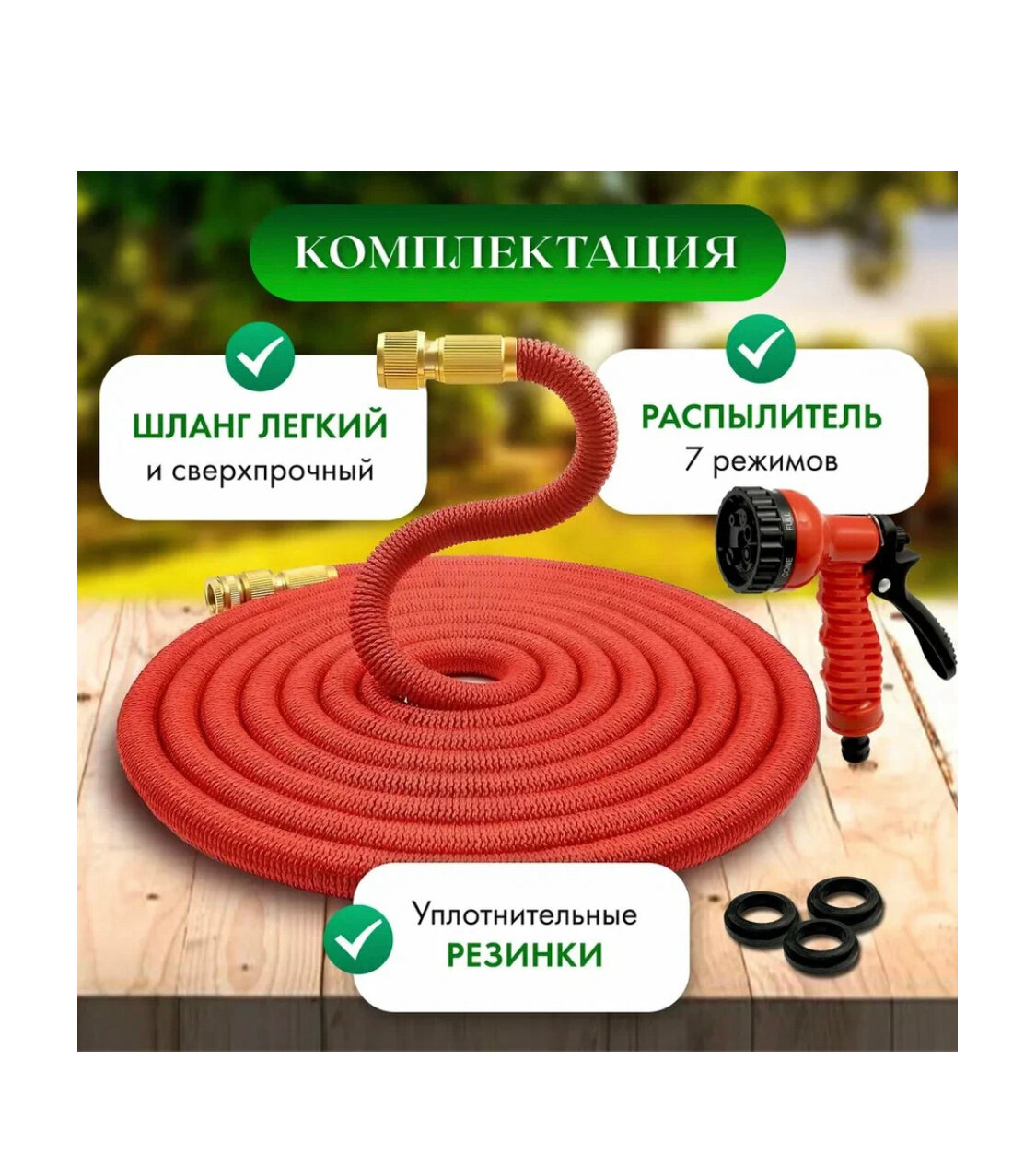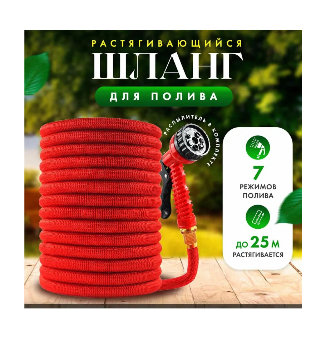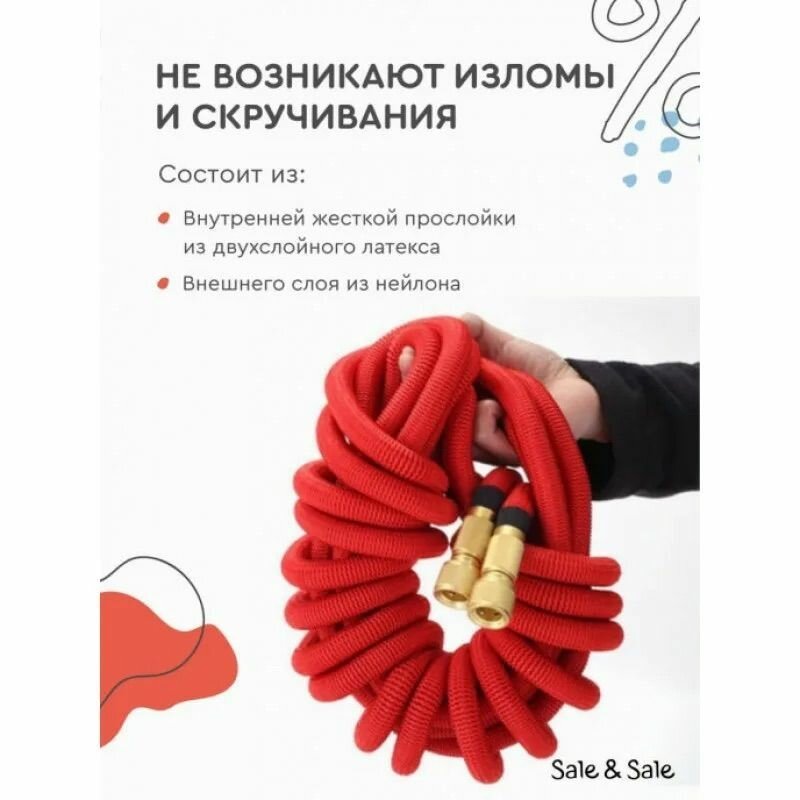 Шланг растягивающийся для полива, Magic garden hose" 25 метров / С латунными разъемами и распылителем/красный интересное: