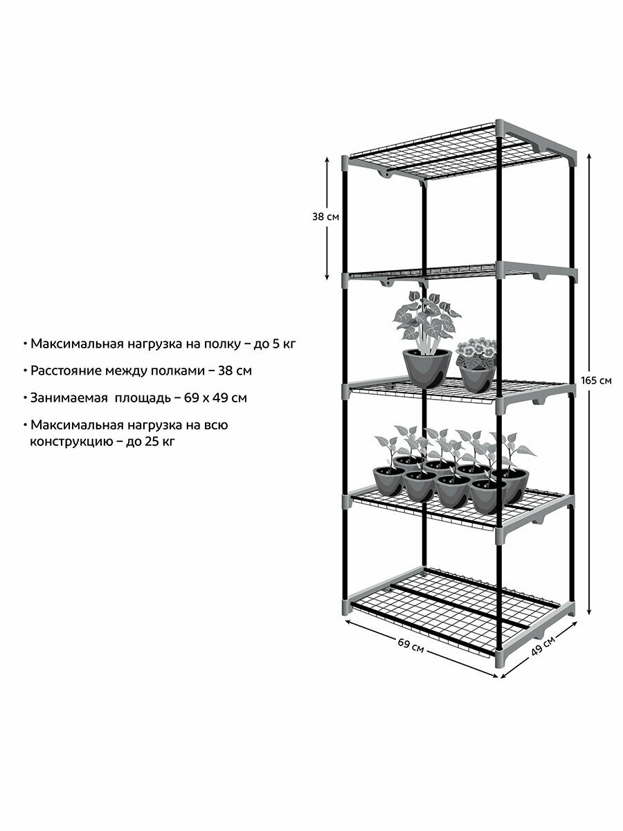 GARDEN SHOW Стеллаж для цветов, рассады (каркас парника) Маргарита 5 полок, размеры 69х49х165 см интересное: