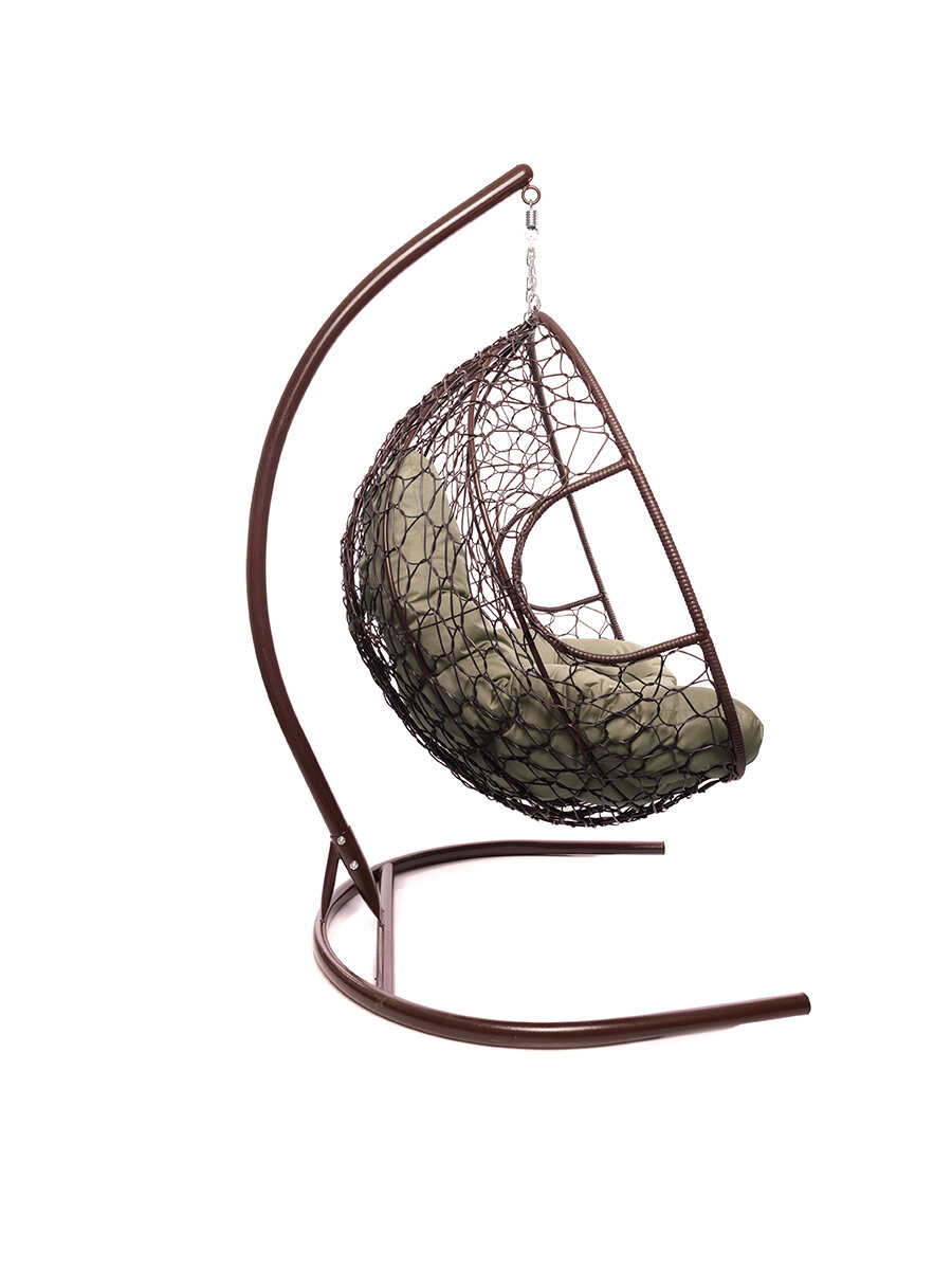 Подвесное кресло M-group для двоих с ротангом коричневое зелёная подушка
