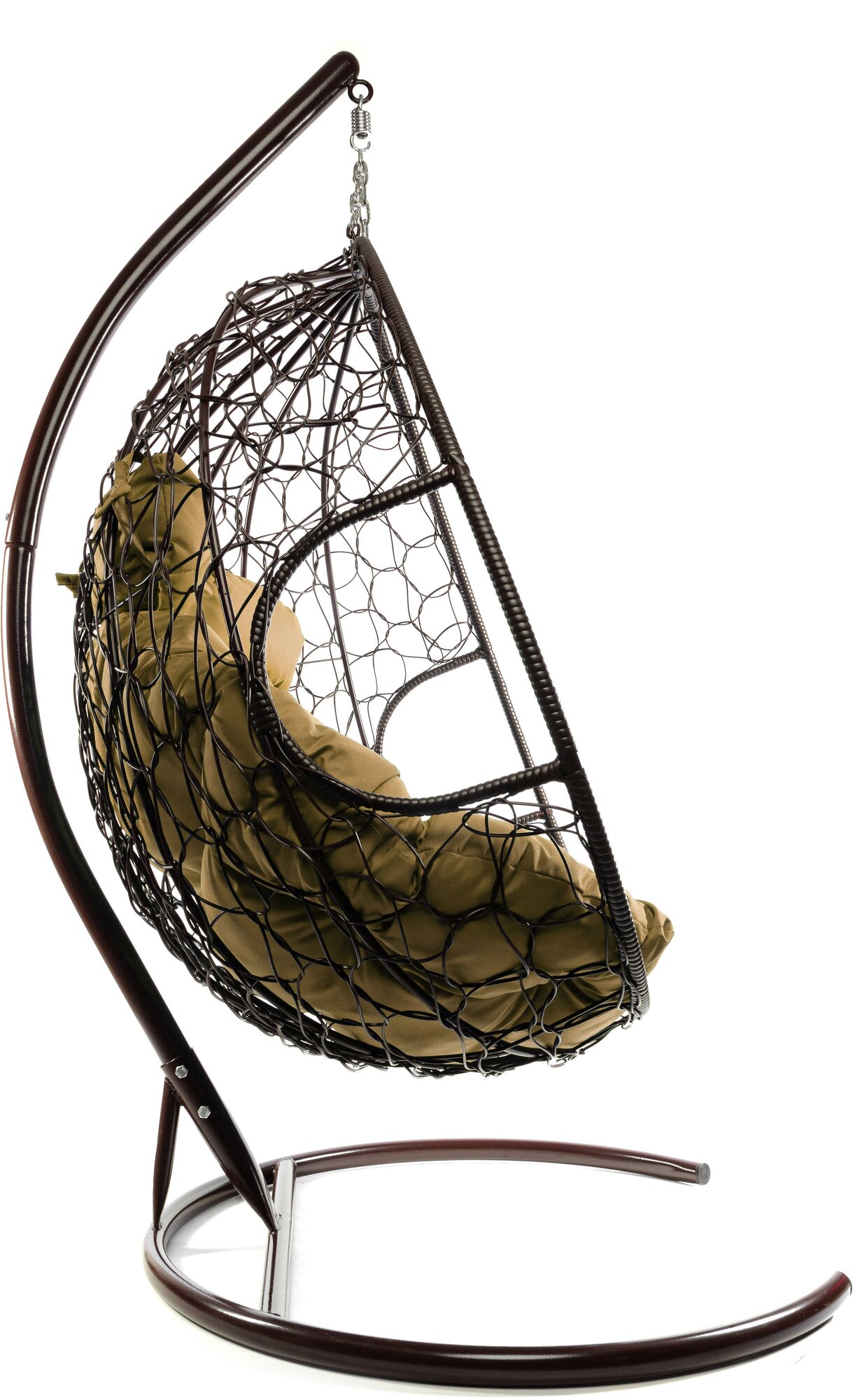 Подвесное кресло из ротанга "Для двоих" коричневое с бежевой подушкой M-GROUP