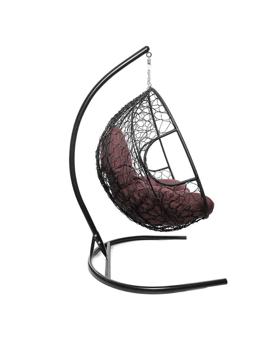 Подвесное кресло для двоих с ротангом чёрное, бордовая