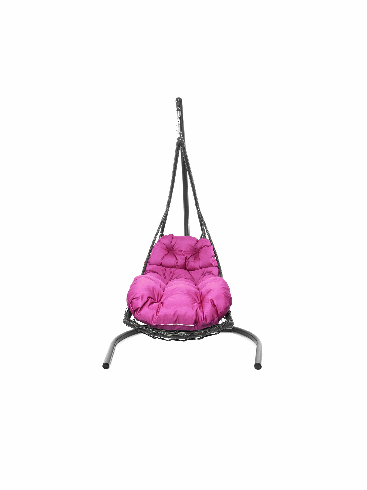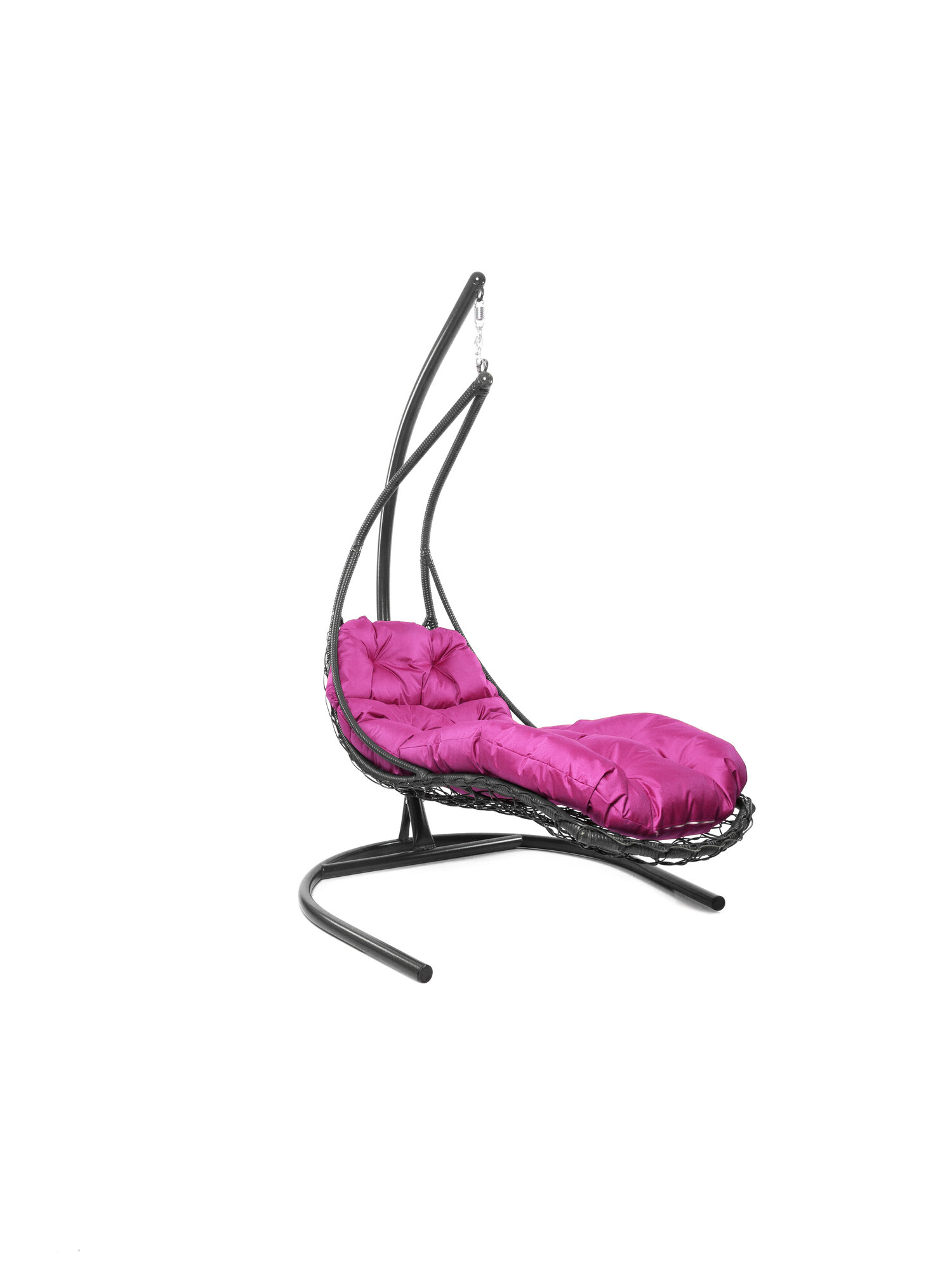 Подвесное кресло лежачее, с ротангом черное, розовое подушка