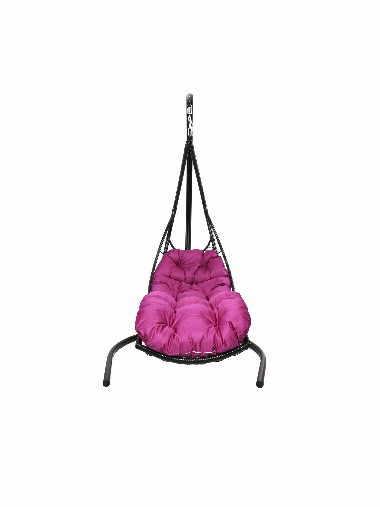 Подвесное кресло лежачее, с ротангом черное, розовое подушка