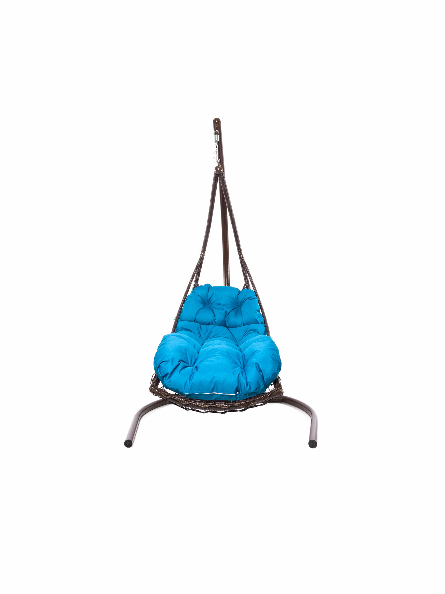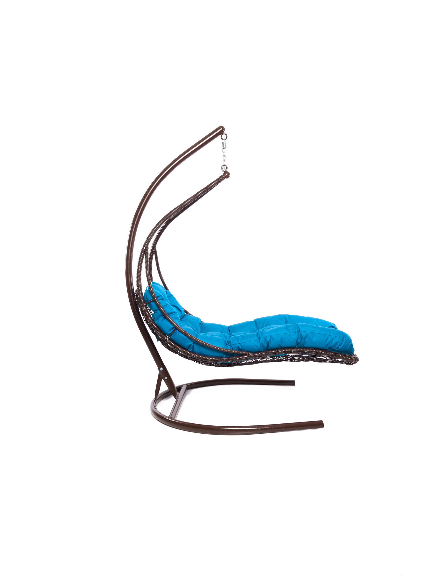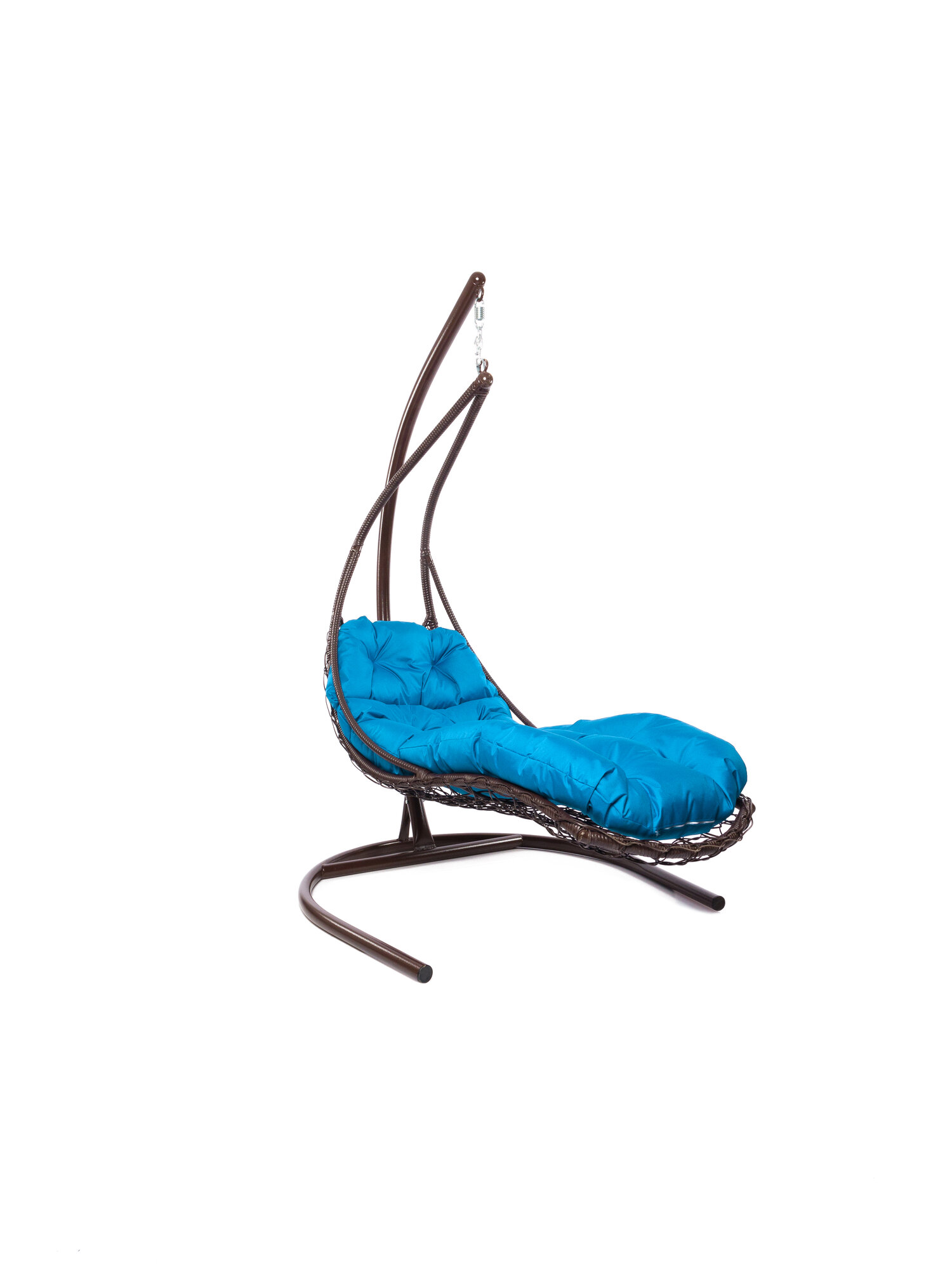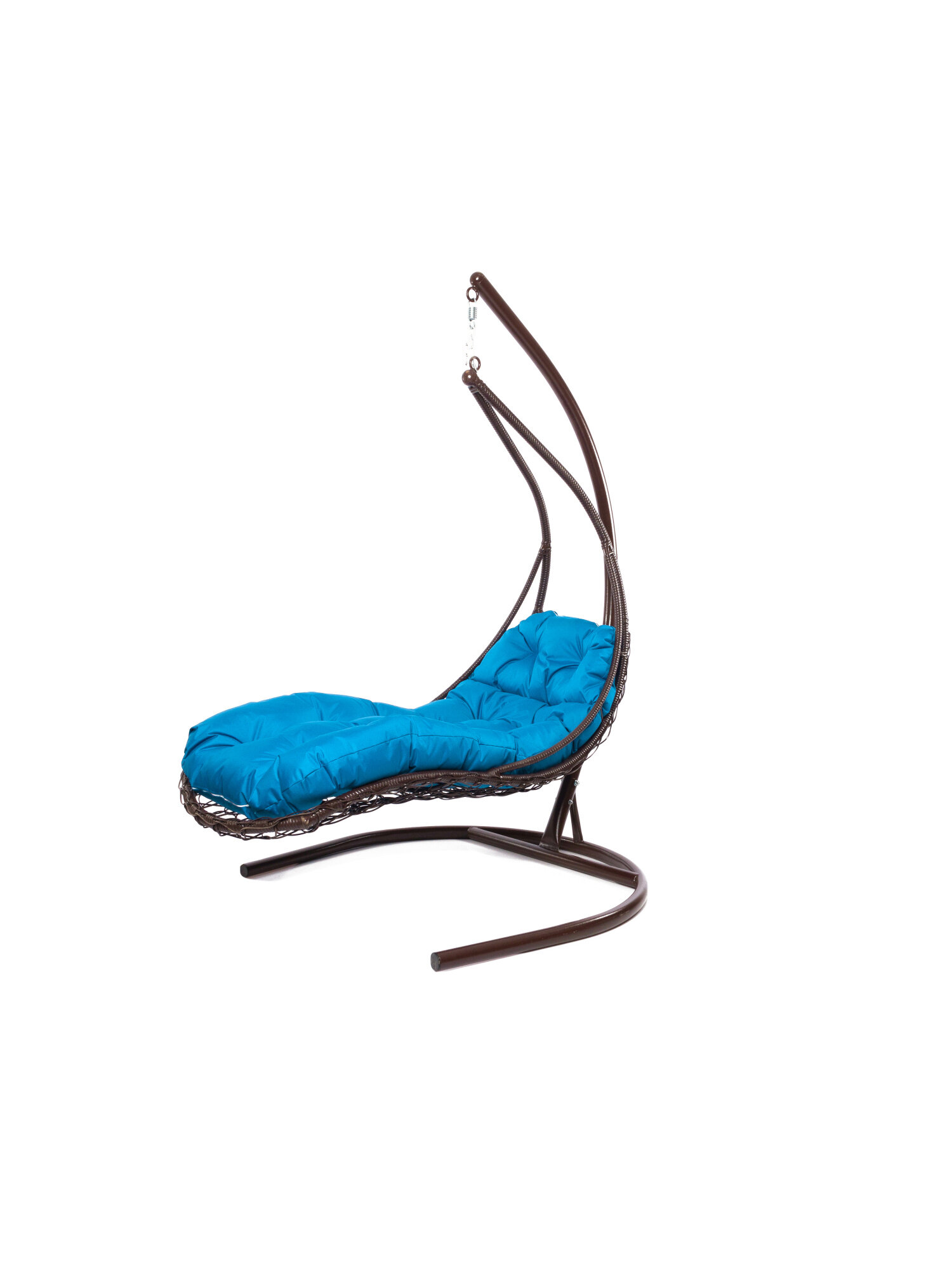 Подвесное кресло лежачее, с ротангом коричневое, голубая подушка