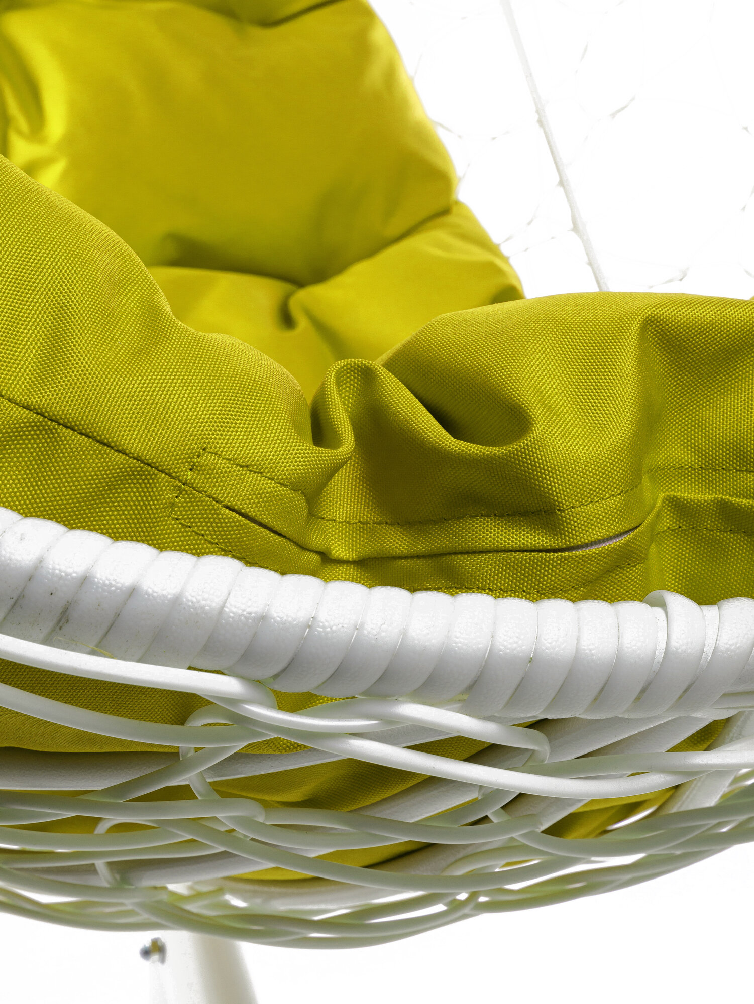 Подвесное кресло из ротанга "Капля" белое с жёлтой подушкой M-Group