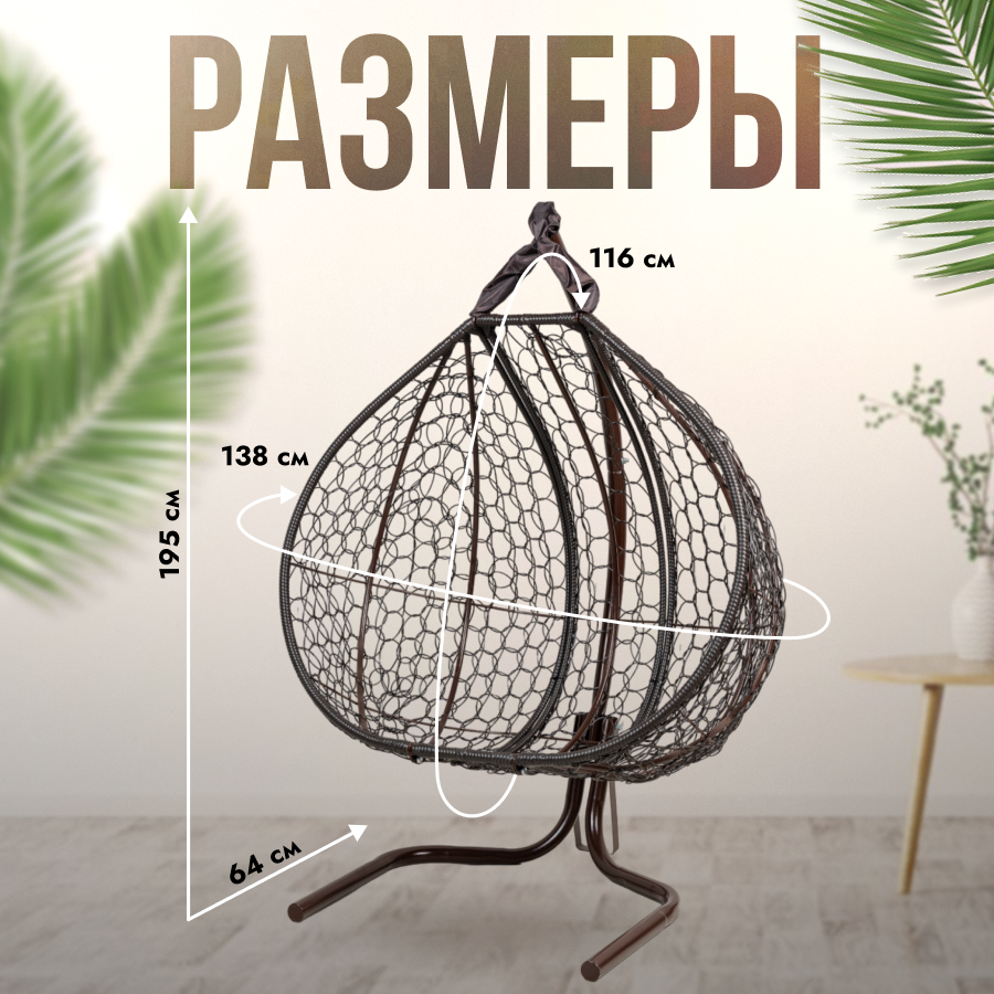 Подвесное кресло кокон STULER Венге Двуместный Trevel Ажур 195х64х138 садовое подвесное кресло с коричневой подушкой