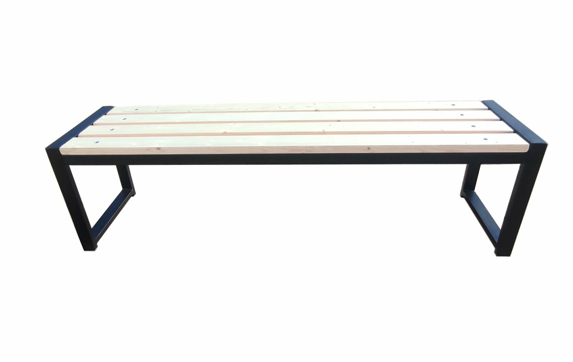 Скамейка садовая Классика с деревянными спинкой и сиденьем без покраски, лавочка для дачи с металлическим каркасом