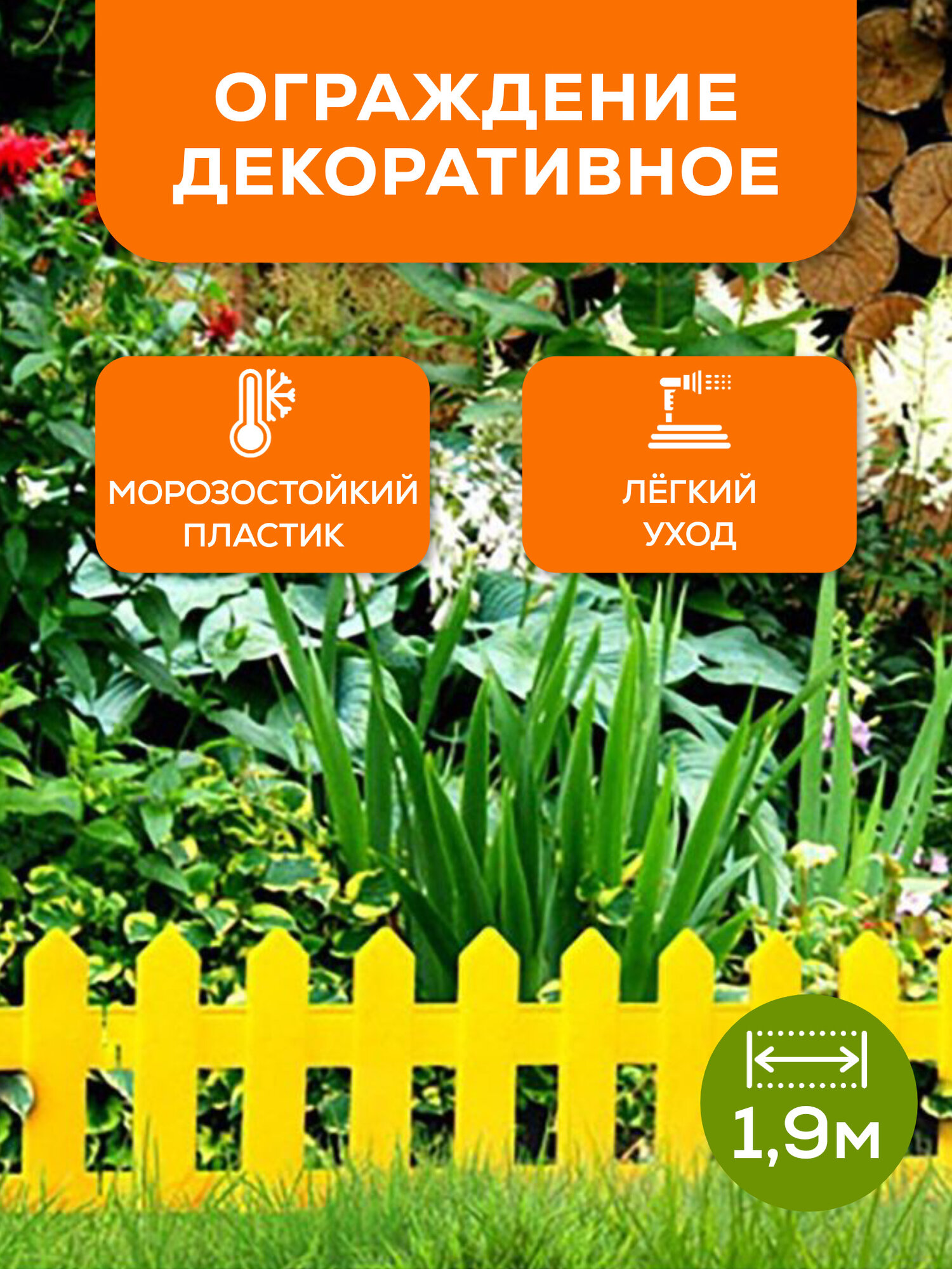 Заборчик садовый "Палисадник-желтый" Мастер Сад. В сборе 1.9 м, высота 20 см