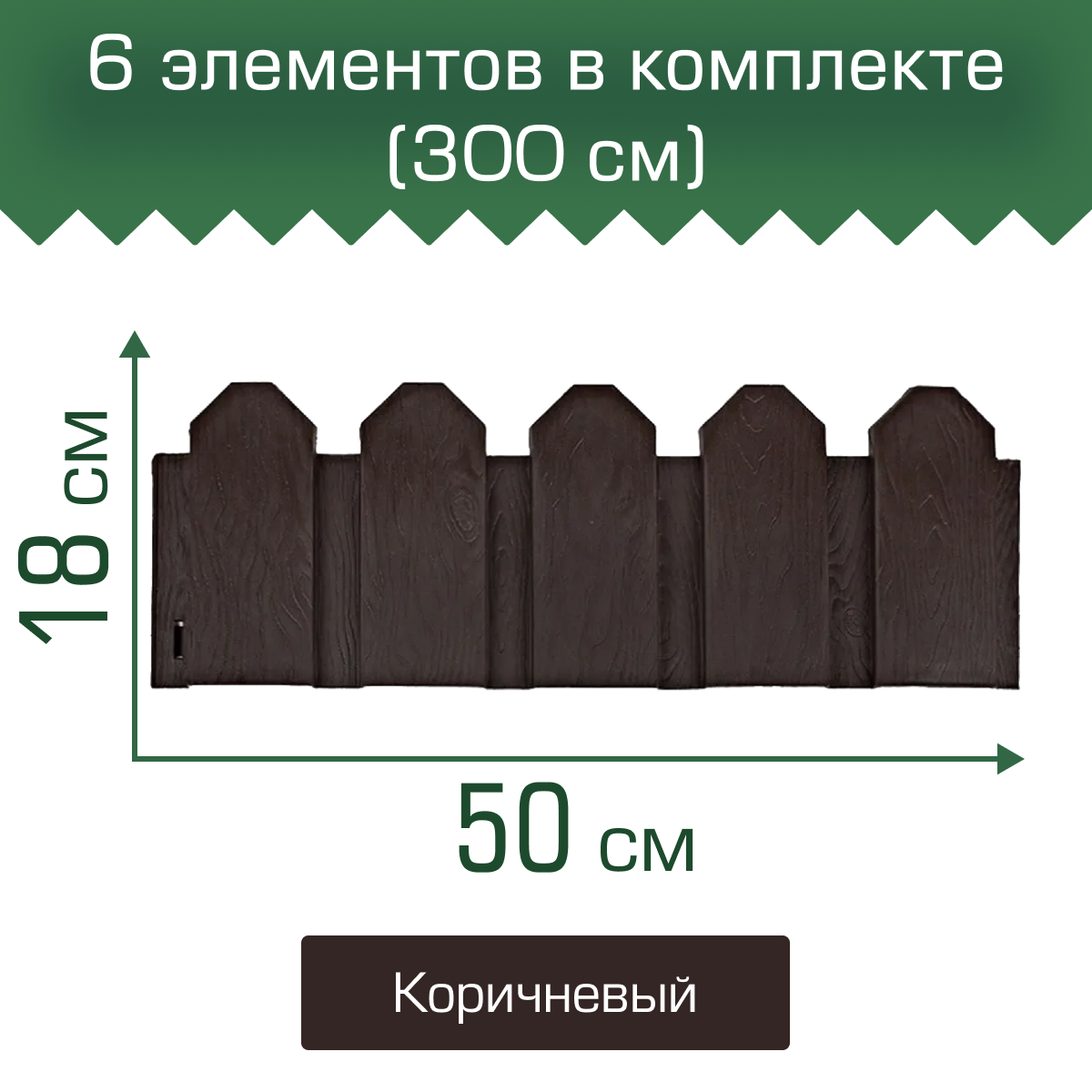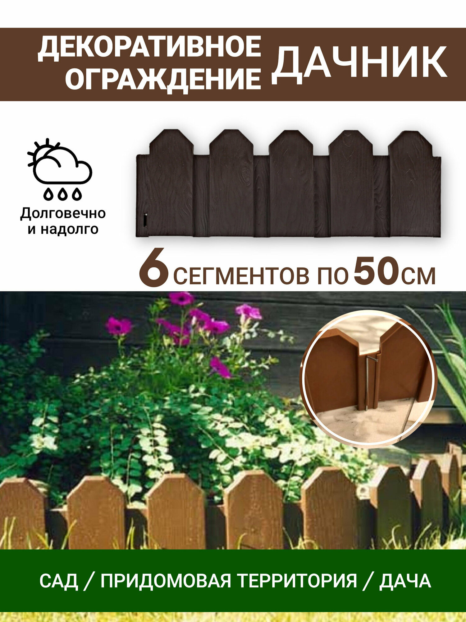 Ограждение декоративное, 18 × 300 см, 6 секций, пластик, коричневое, «Дачник»