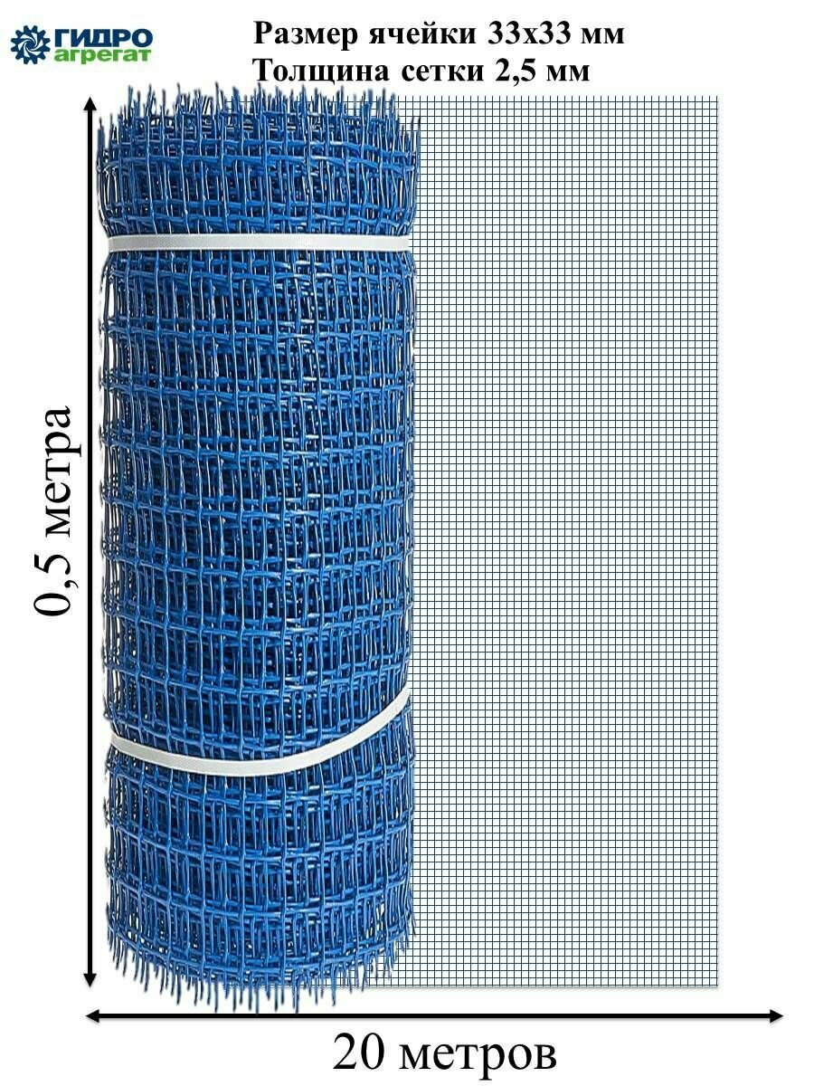 Купить Садовая сетка квадратная 33х33 (0,5 х20) профи синий
