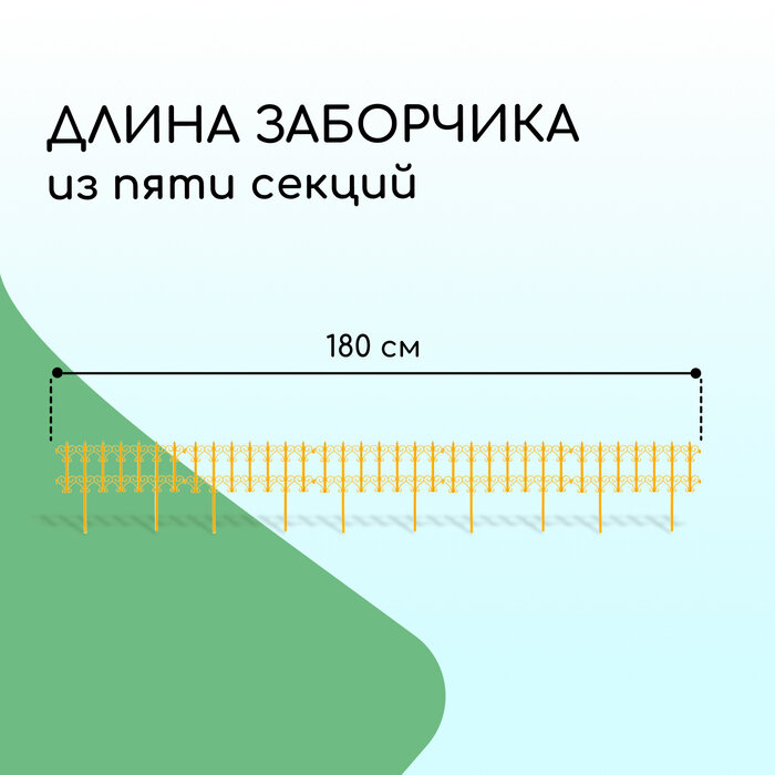 Ограждение декоративное, 25 × 180 см, 5 секций, пластик, жёлтое, «Классика»