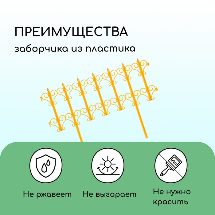 Купить Ограждение декоративное, 25 x 180 см, 5 секций, пластик, жёлтое, "Классика"