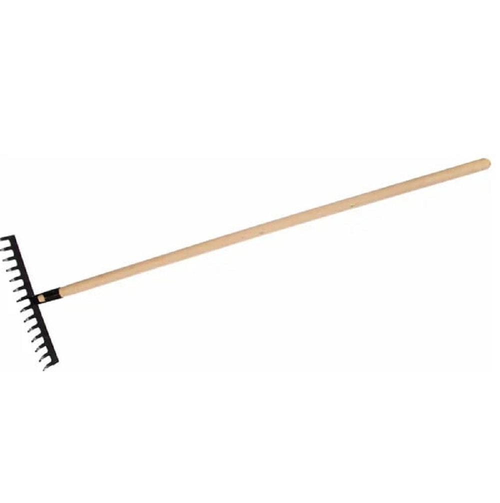 Грабли стальные Сибртех 300х1300 мм, 12 прямых зубьев, деревянный черенок 61741