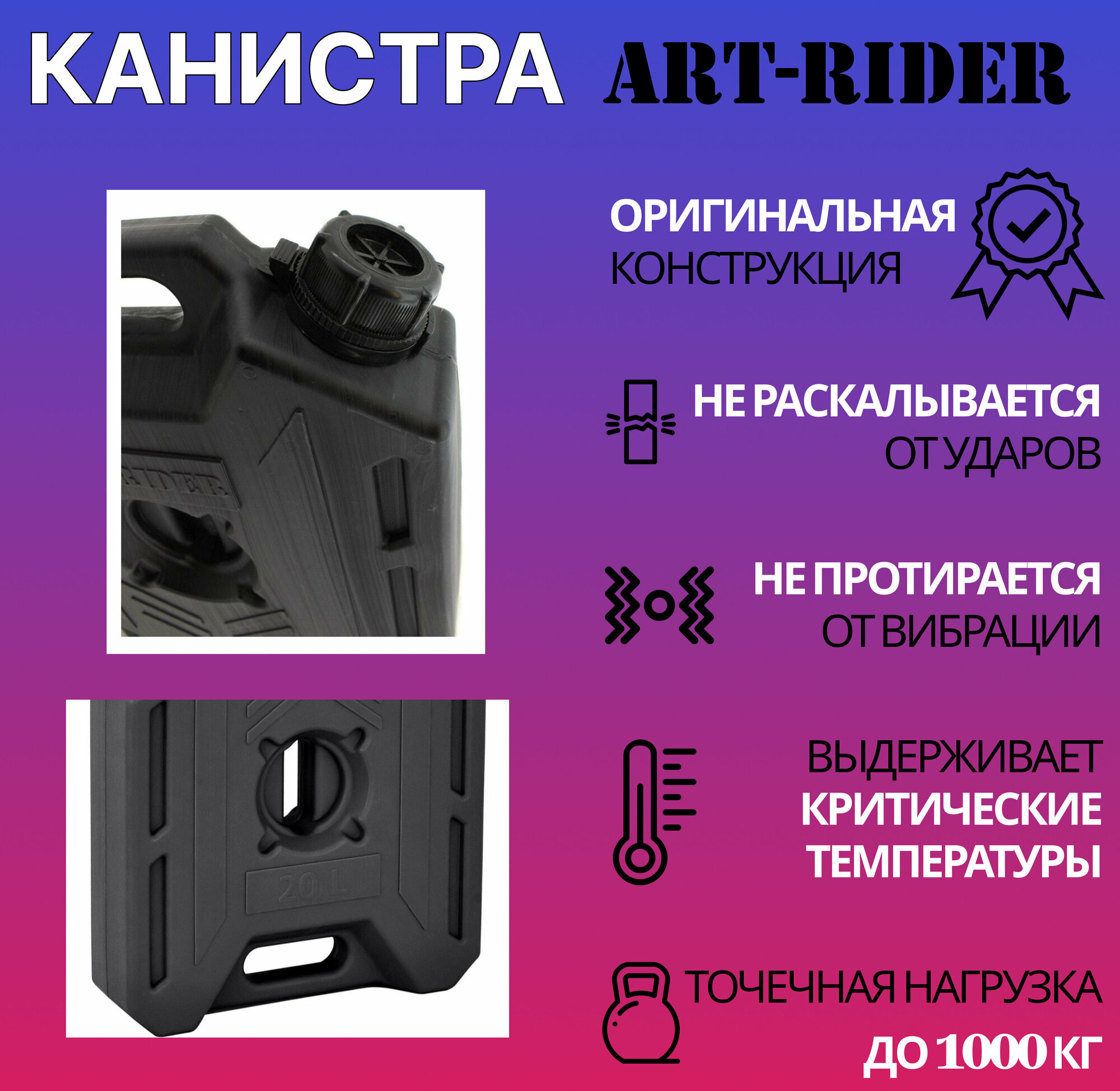 СохранитьКанистра для бензина ART-RIDER 20 л, канистра для воды, канистра экспедиционная, горизонтальная, черная интересное: