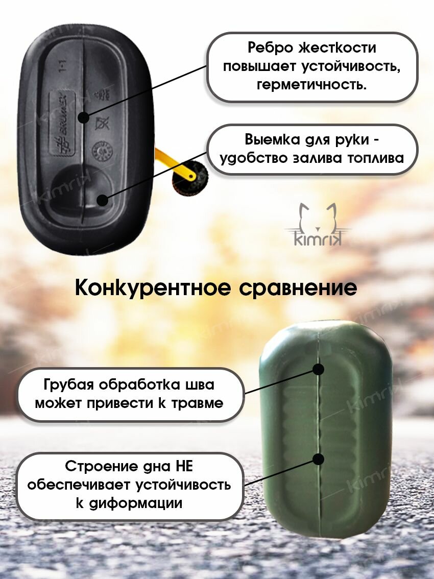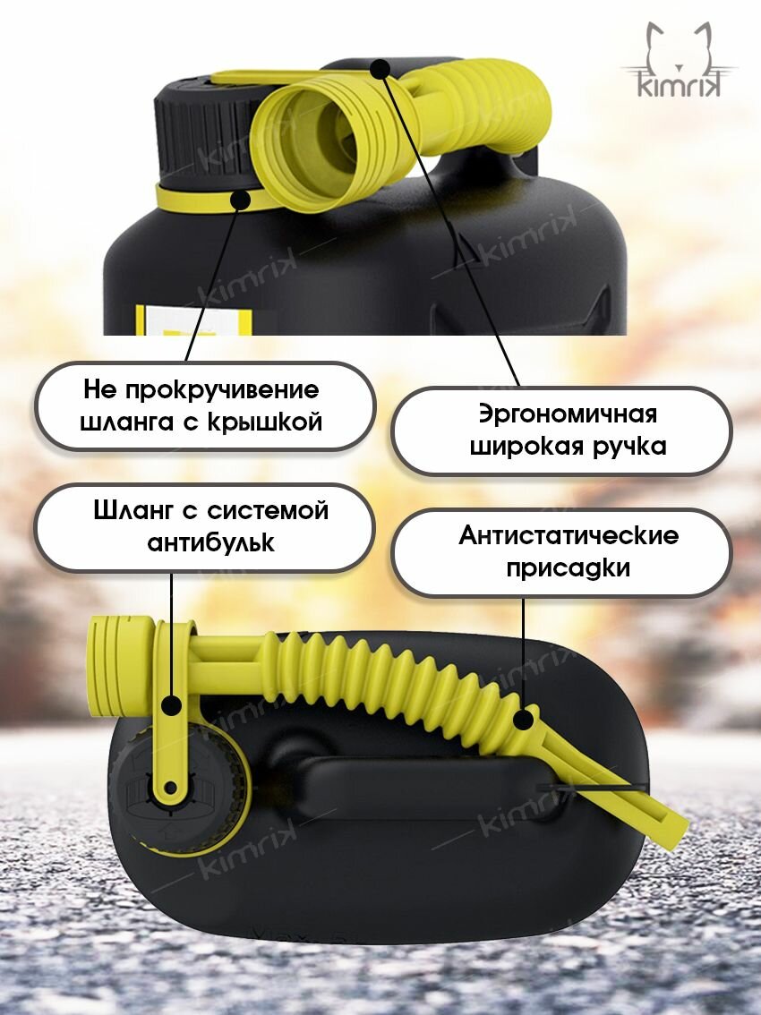 | Дополнительная информация | Все канистры снабжены крышкой с замком, предотвращающим случайное открытие и гибким гофрированным носиком, с системой "антибульк", для удобной заливки топлива через горловину бензобака автомобиля. |
