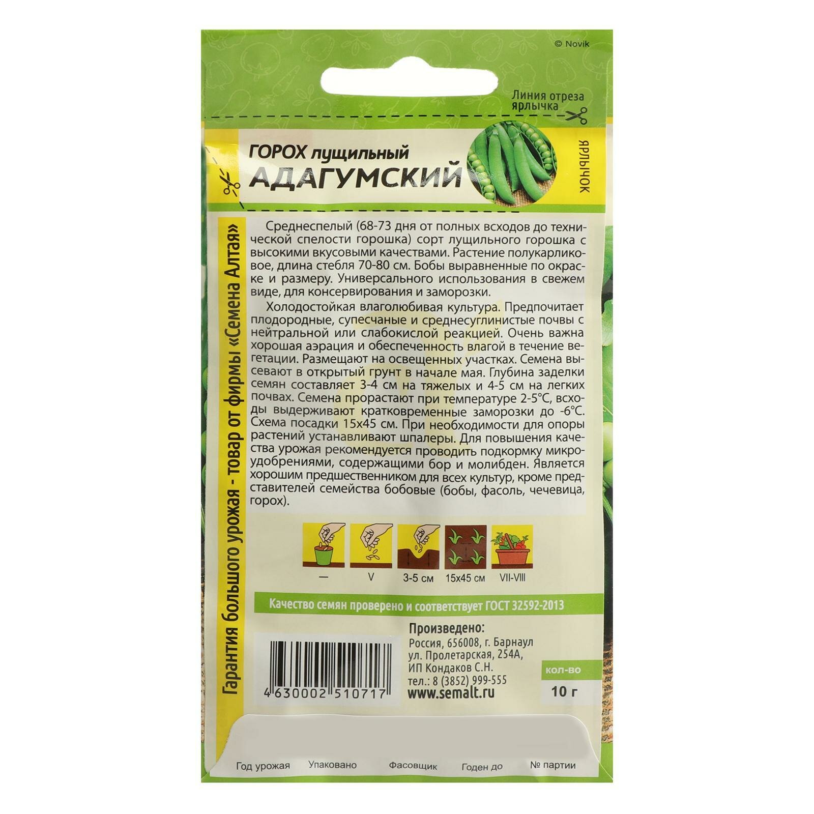 Семена Горох Алтайский Изумруд 10г (Семена Алтая) Белый пакет